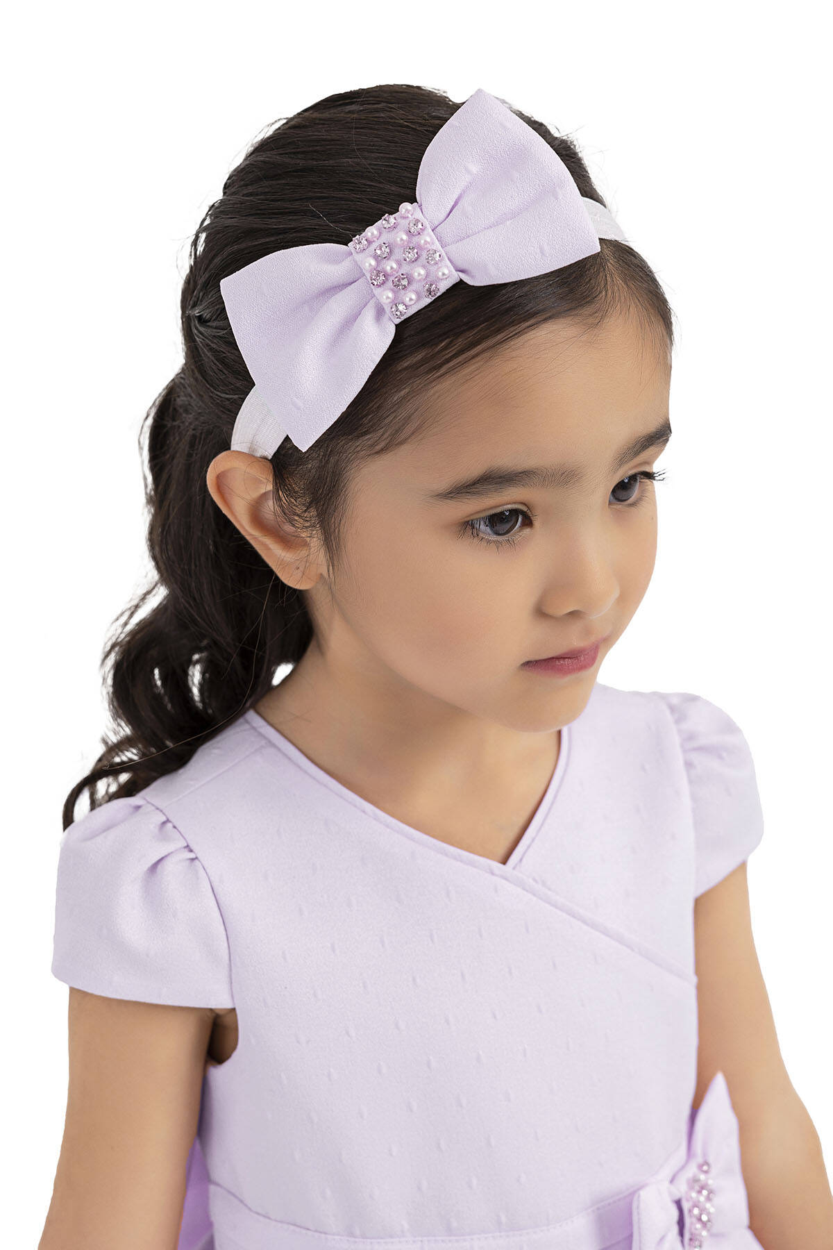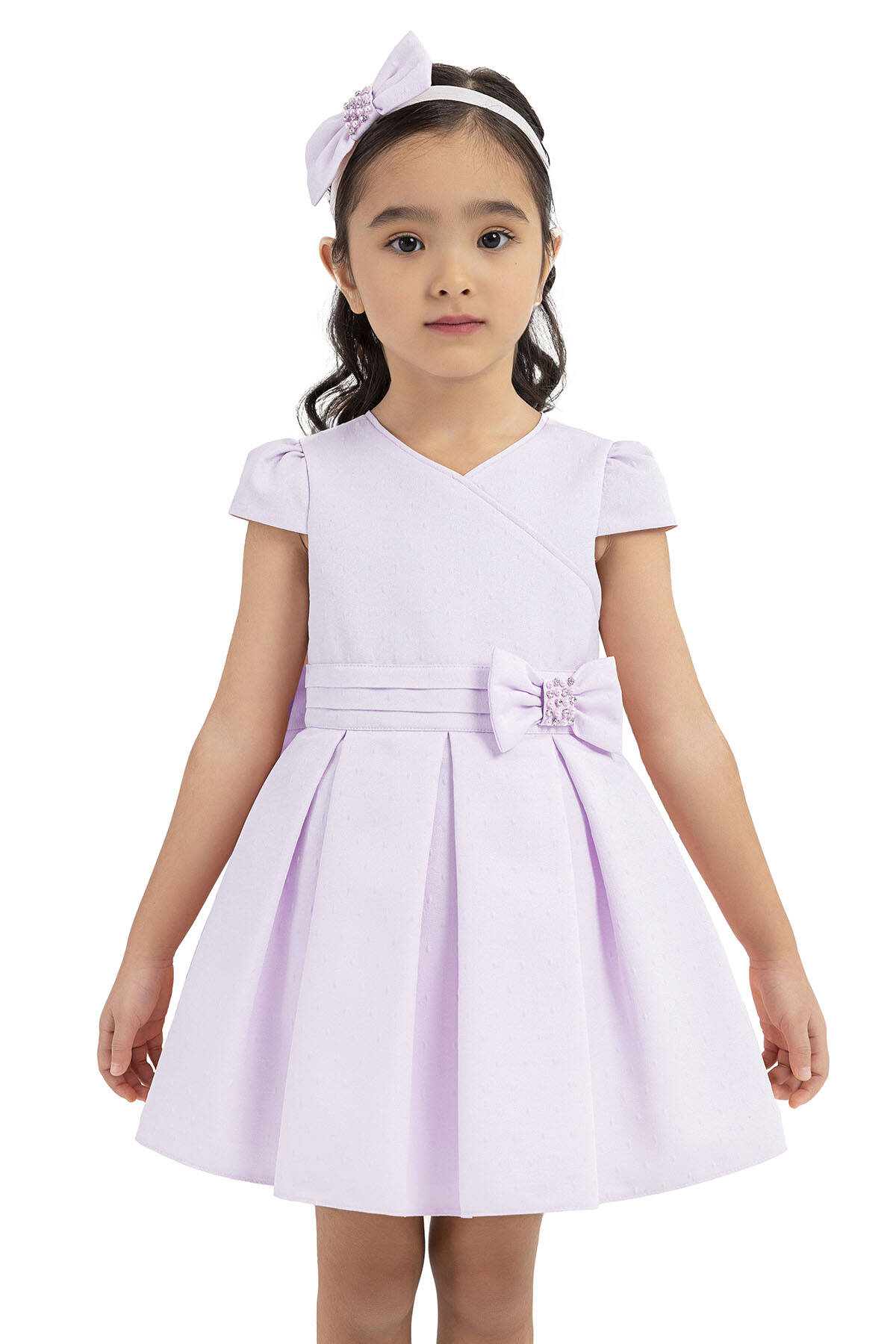 PAMINA dresses are glamorous with its every detail. Moon-sleeved and double-breasted dress is an elegant choice for special days. It is very attractive with its pleated belt and its pearl and stone embroidered. The skirt of the dress was designed with jacquard fabric is inverted pleated. It is voluminous with its soft tulle embossing and it is soft and comfortable with its cotton lining. The design of the headband with bow is the special design of PAMINA for girls.