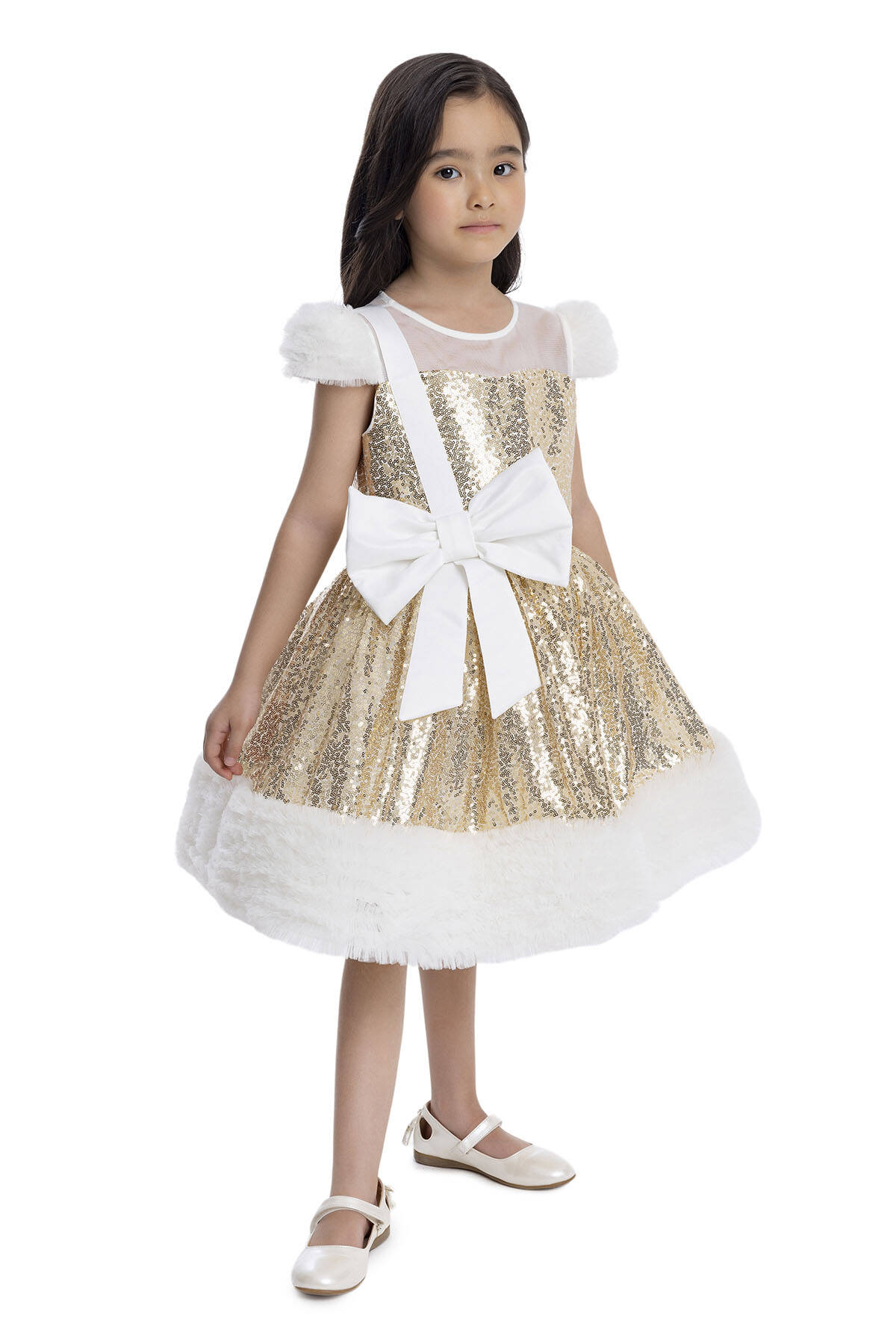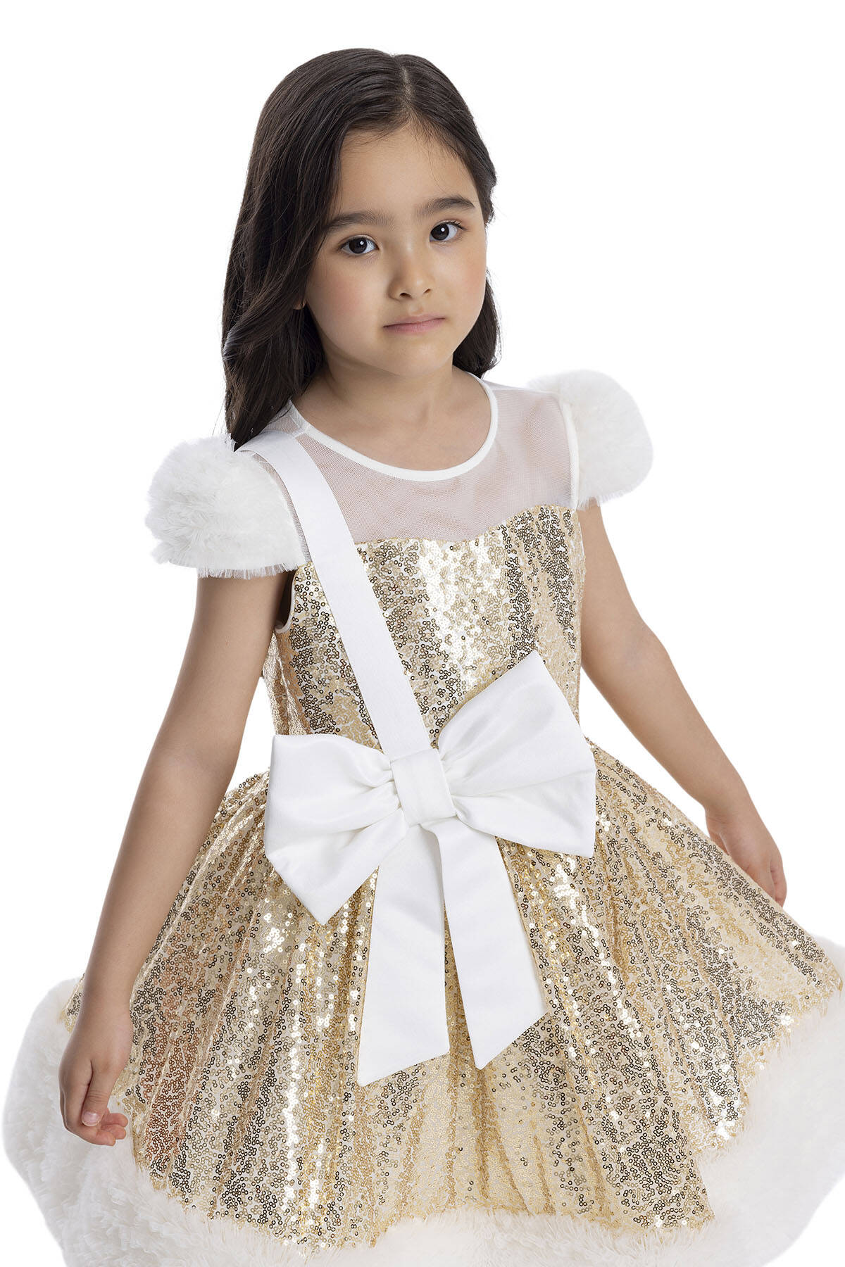 Gold Sequined Girl's Dress 3-7 AGE Product Features: