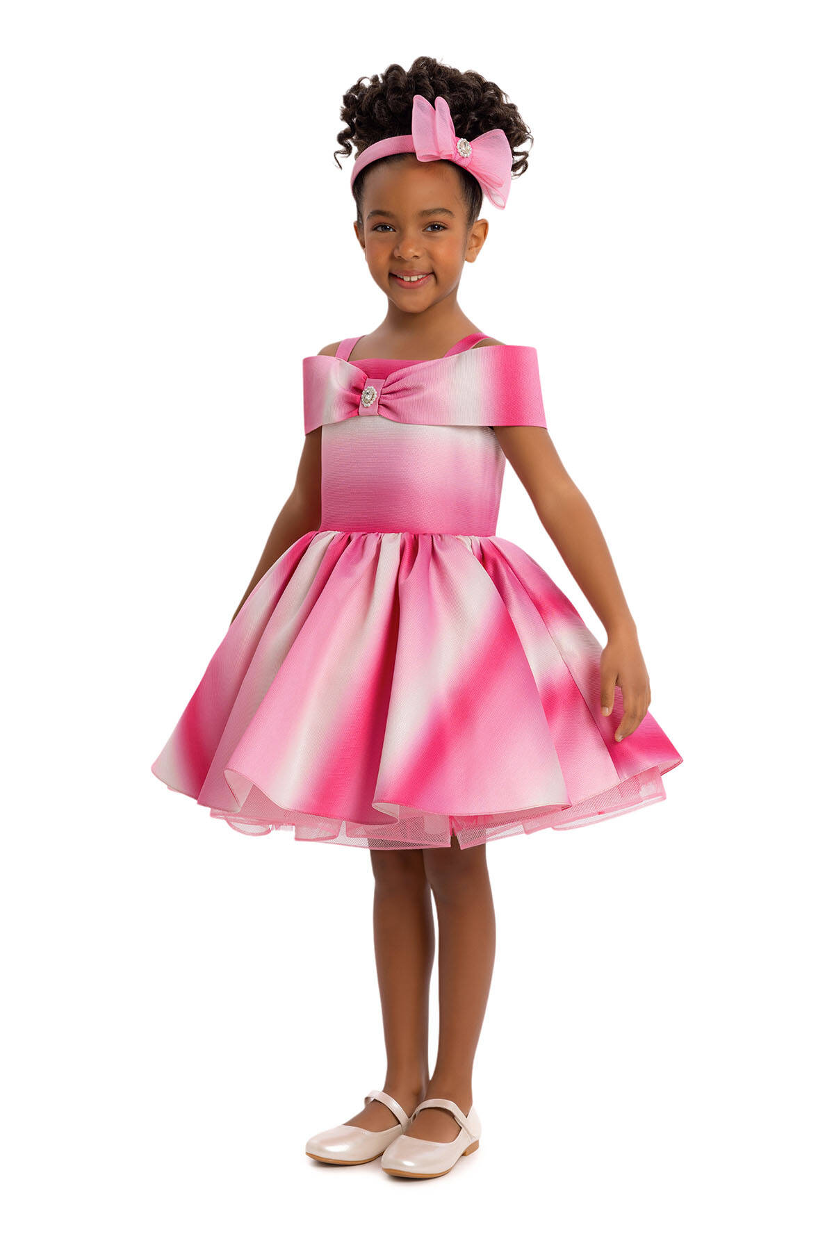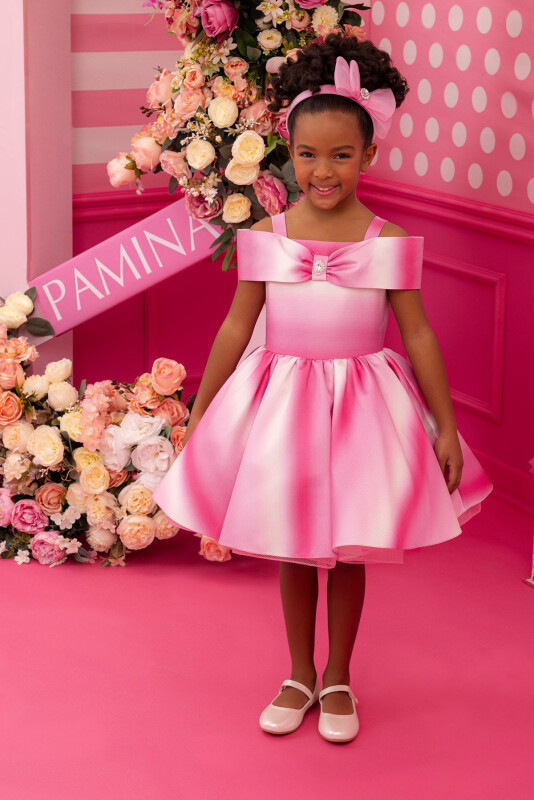 Shoulder strap princess collar dresses will make little girls feel very special. The dress is like a fairy tale with its sparkling brooch on the princess collar. The Fuchsia tie-dye printed fabric will make this dress a favorite among girls, and the gathered crinoline skirt at the waist will be the most dazzling design for summer events. The dress, completed with a bow hair accessory, is waiting for its little princesses. The dress is comfortable and healthy with its 100% cotton lining. A stylish choice that can be used as a birthday dress, party dress, or special occasion dress. Our wholesale girls' dresses will allow your store to offer quality and style to your customers. Whether you own a boutique or engage in retail sales, you can stand out with our models that will contribute to the growth of your business. Explore our latest collection now and discover the perfect options for your business!