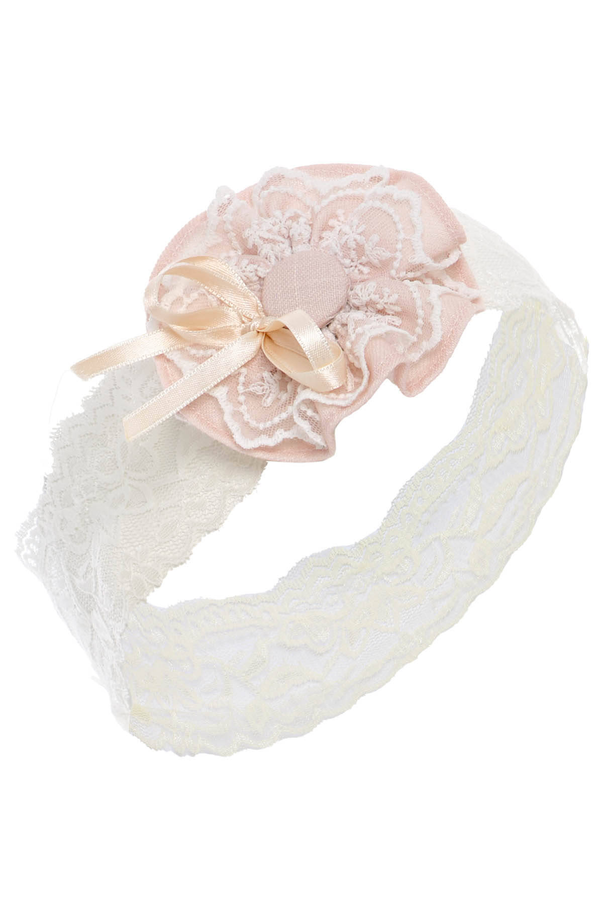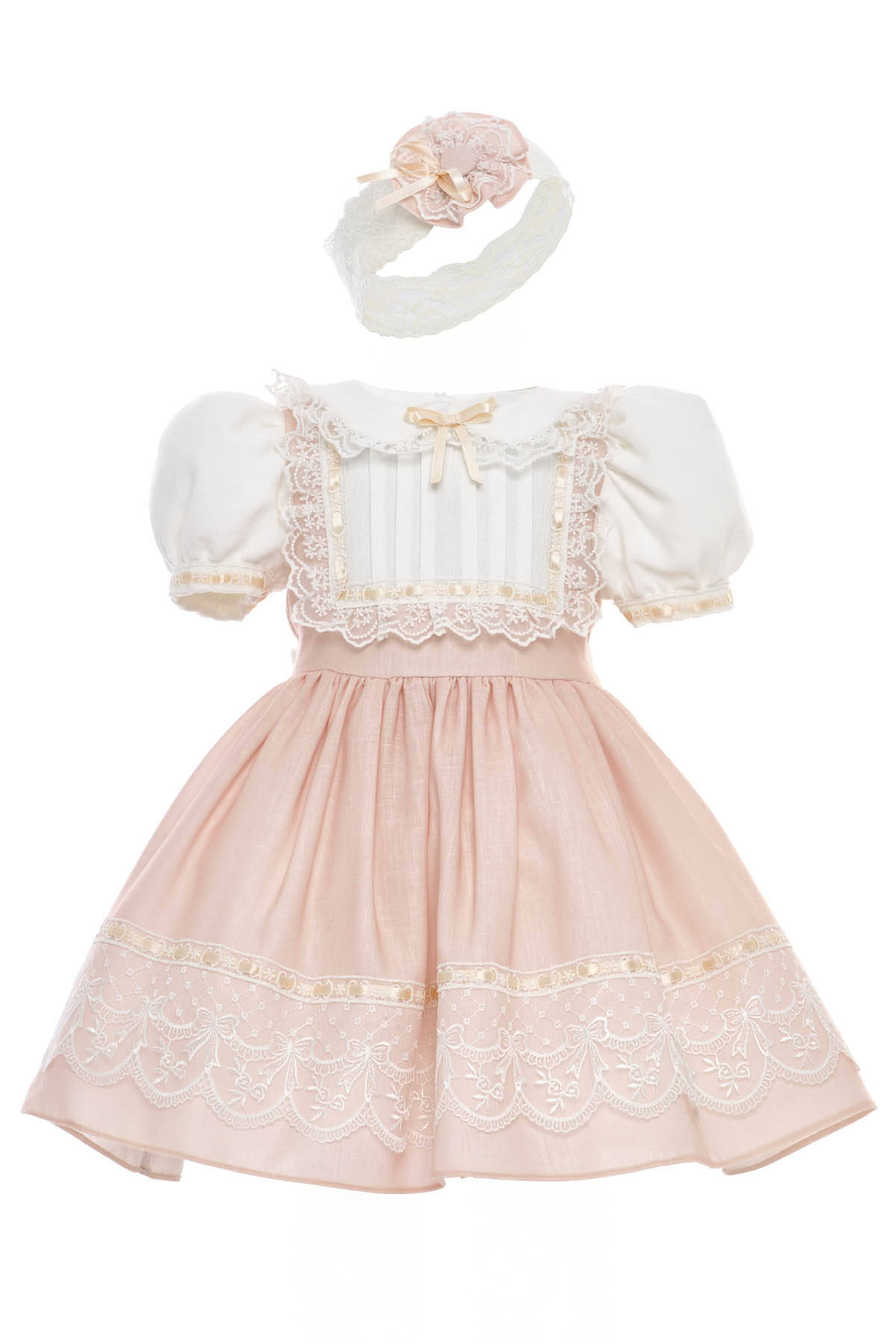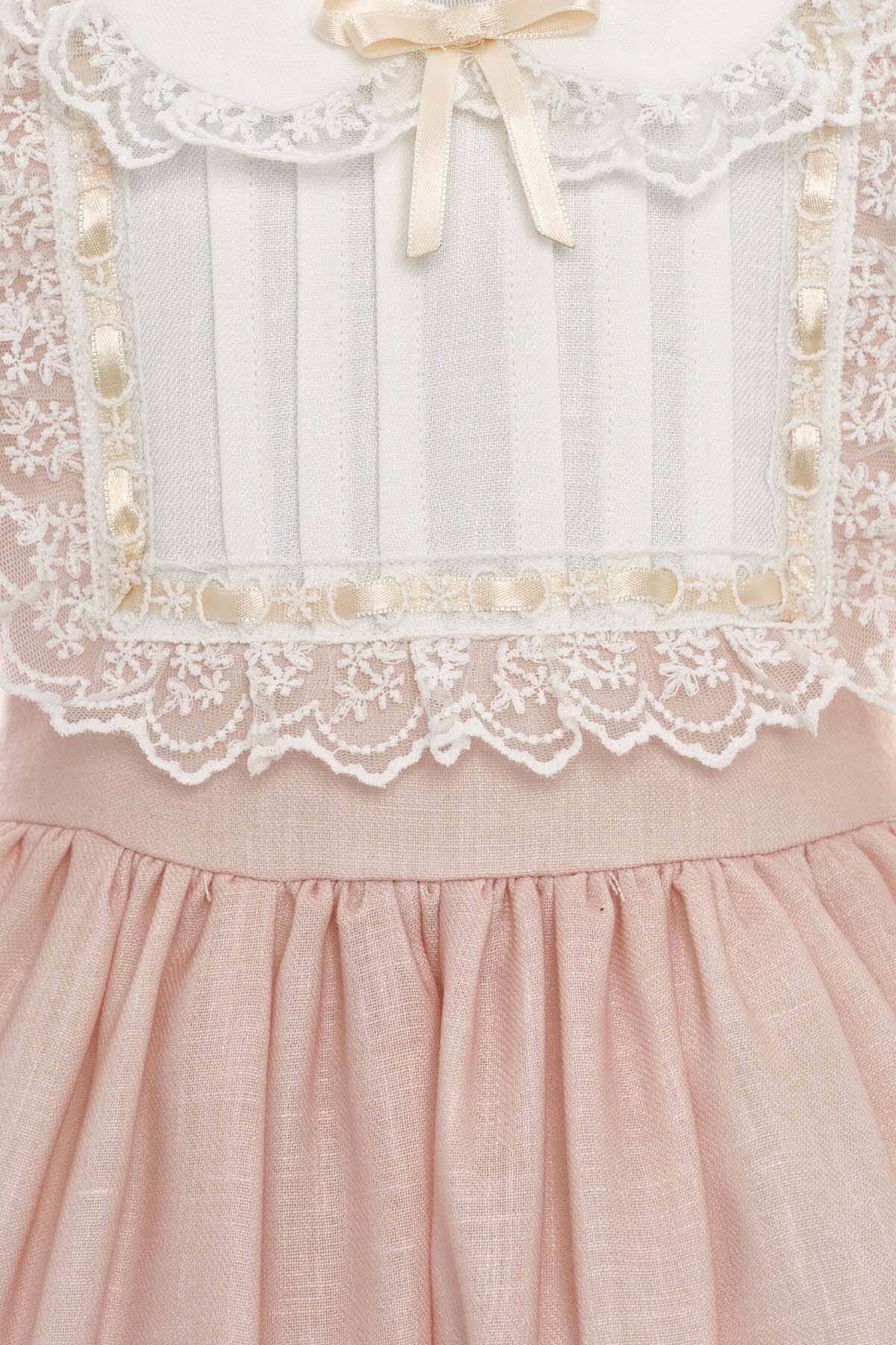 Beige Baby Embroidered Lace Dress with Matching Headband 6-24 MONTH 36421PR