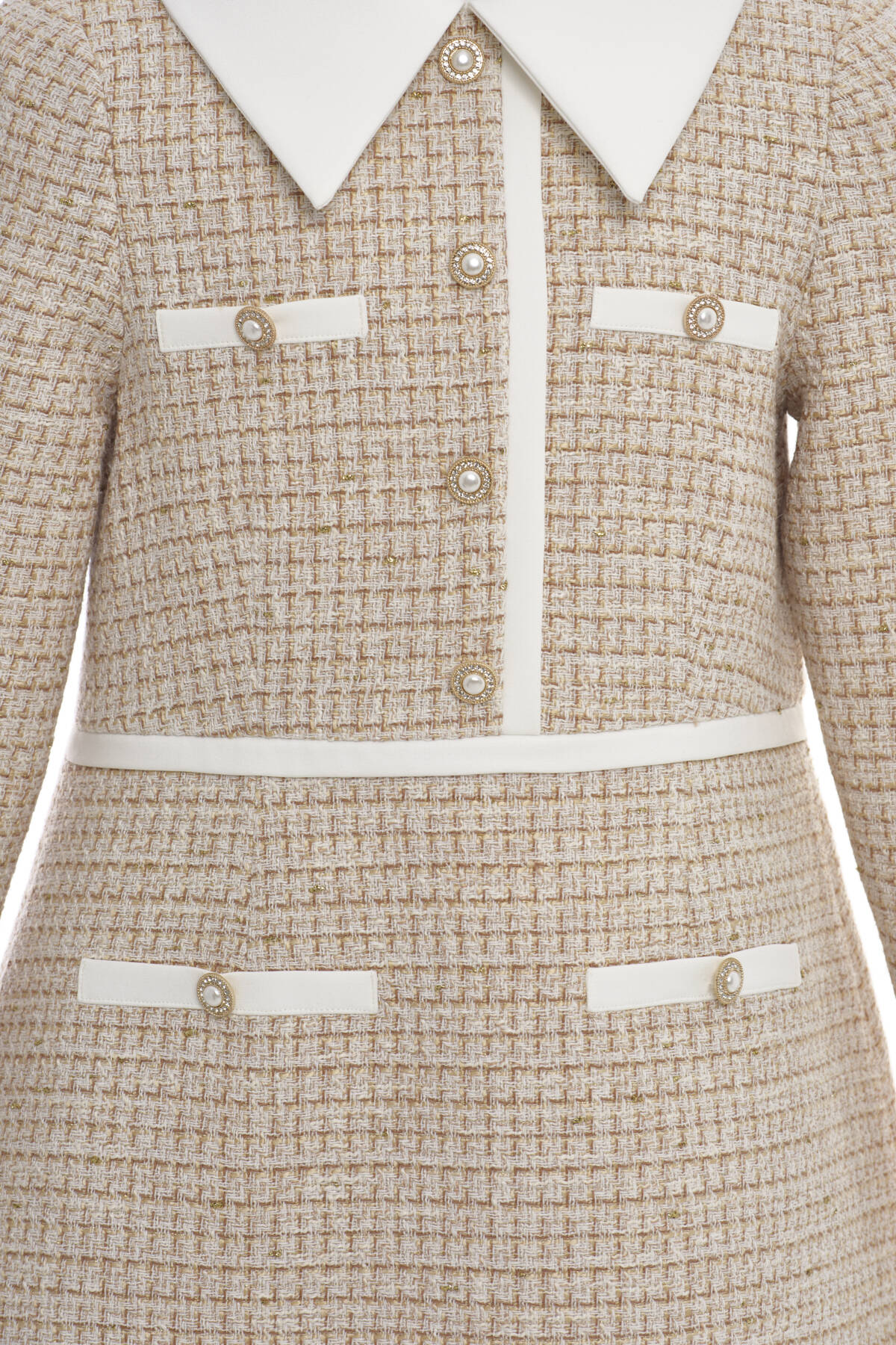 Beige Girls Classic Tweed Dress with Decorative Buttons and Satin Collar (8–15 Age) 8-15 AGE 36393PR