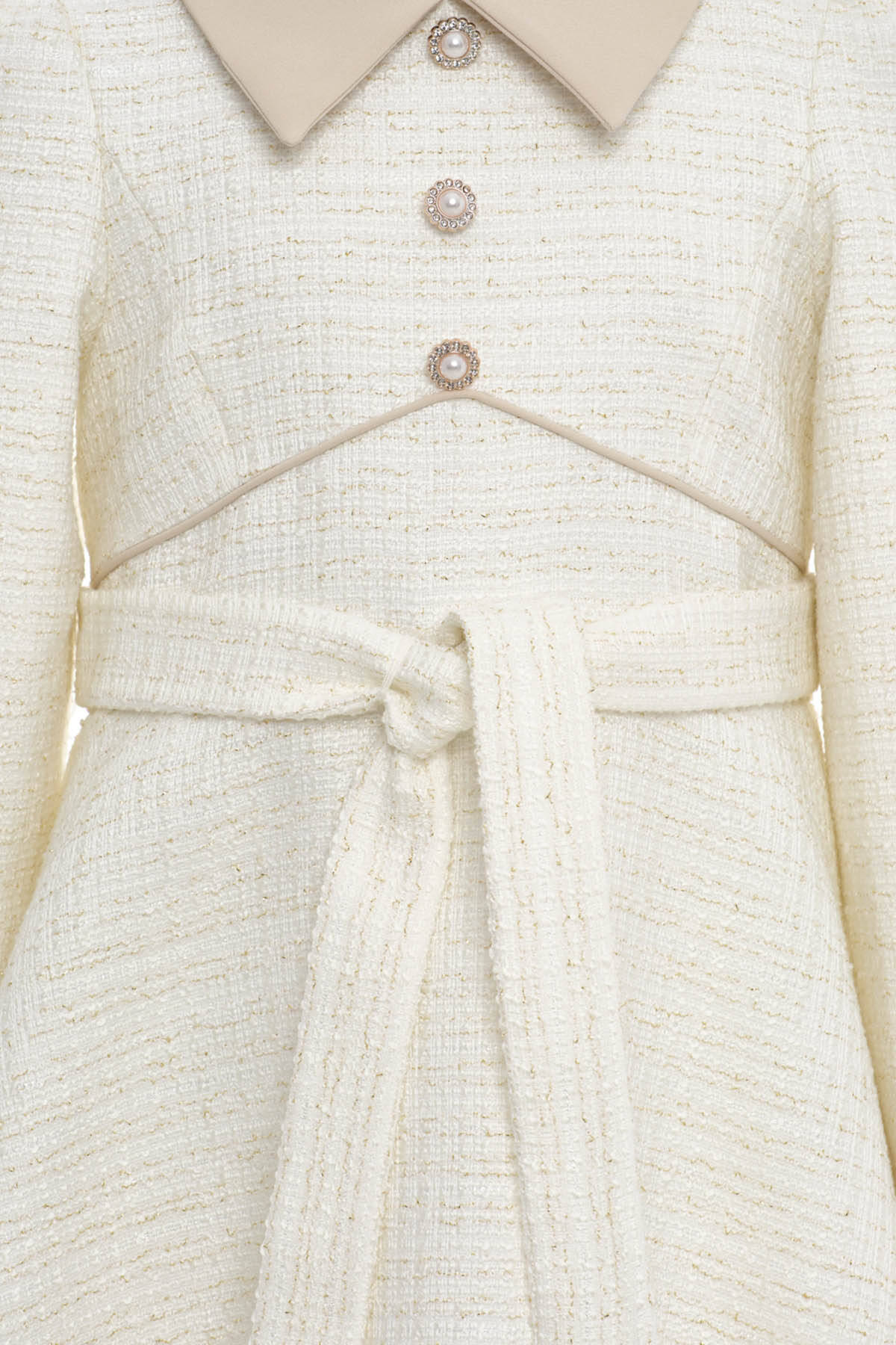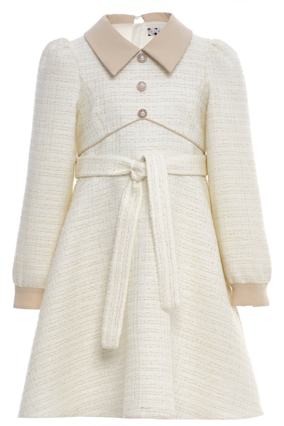 Beige Girls Elegant Tweed Dress with Contrast Collar 8-15 AGE 36398PR