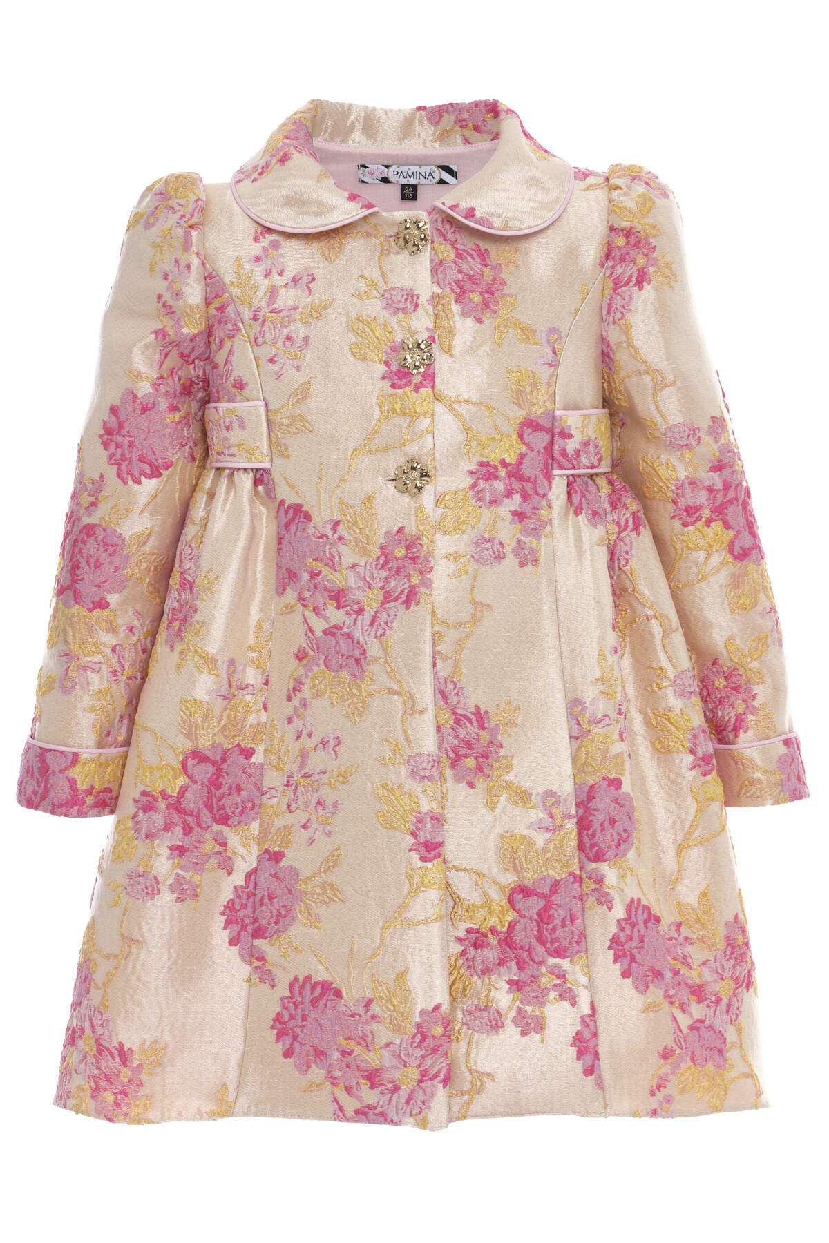 Girls Floral Jacquard Coat & Satin Dress Set (3–7 Age):
