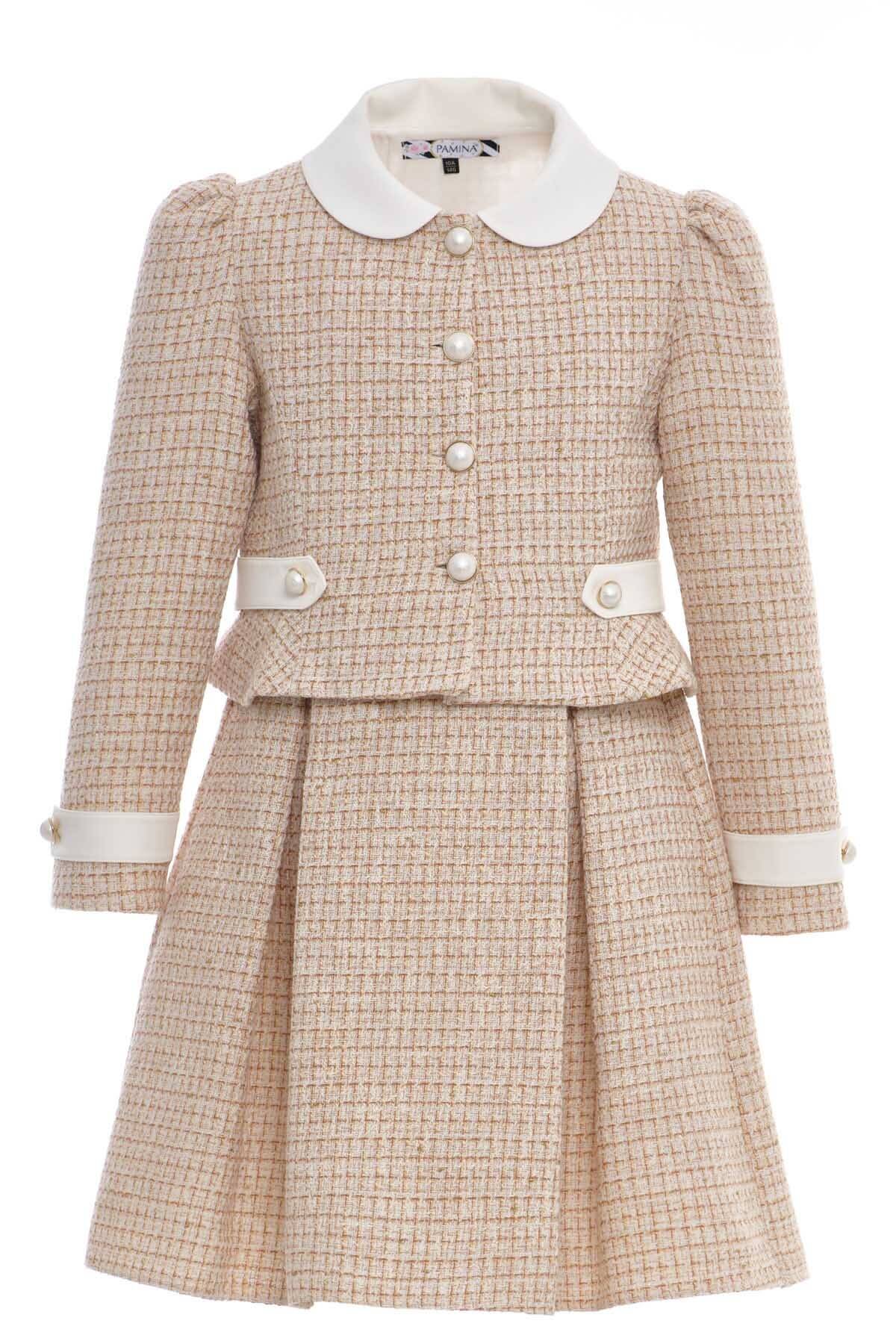 Beige Girls Tweed Dress & Jacket Set 3-7 AGE 36309PR Prices are visible only to registered business customers