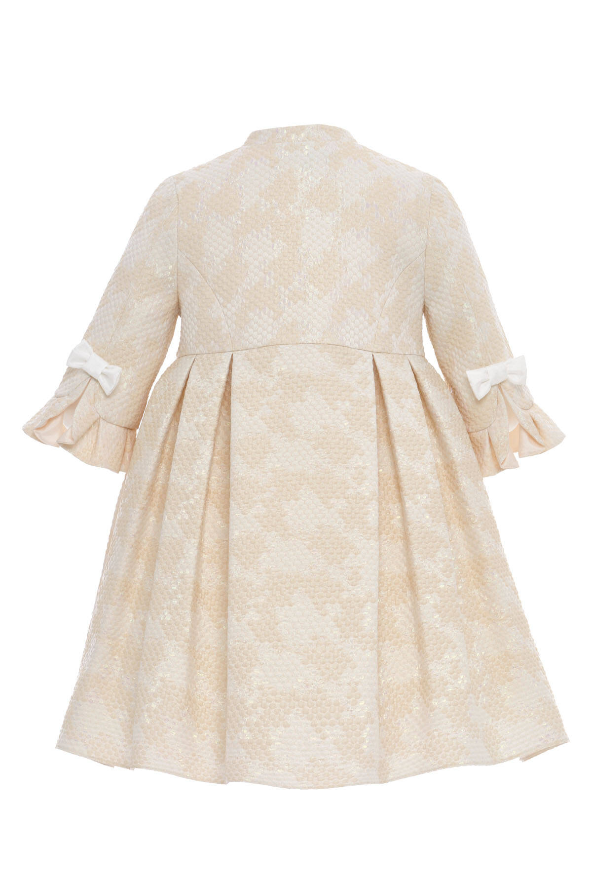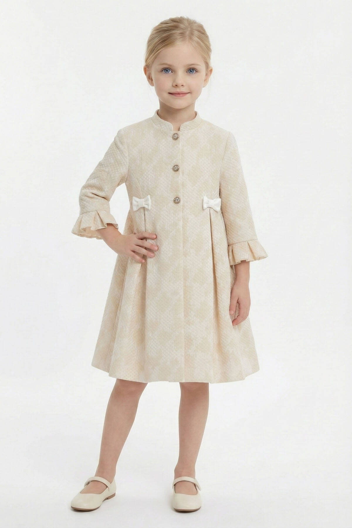 Beige Grils Dress with Long Jacquard Coat Set 3-7 AGE 36295PR