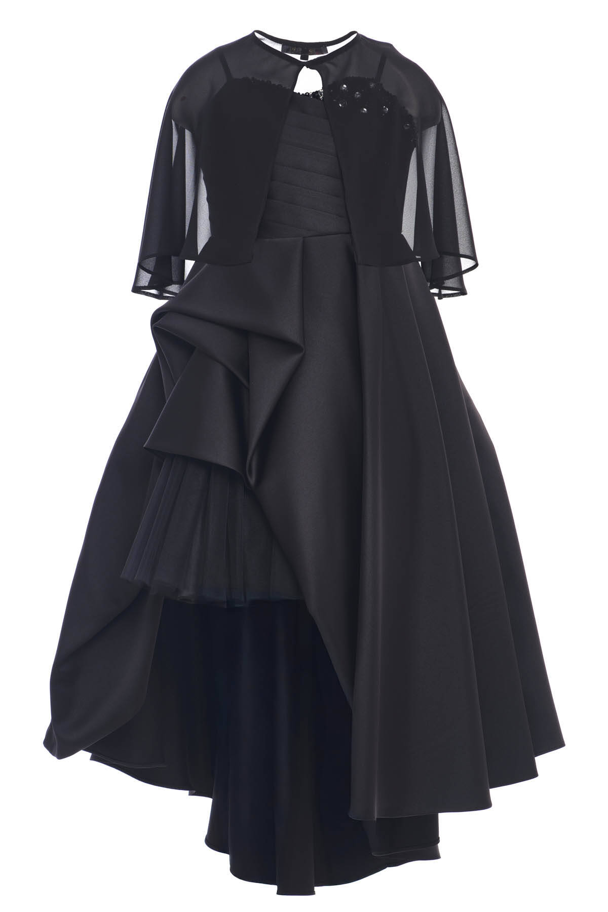 Black Elegant Satin Dress with Removable Sheer Cape 8-15 AGE 36055PR