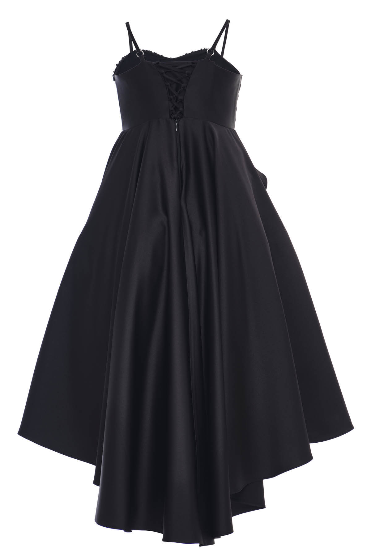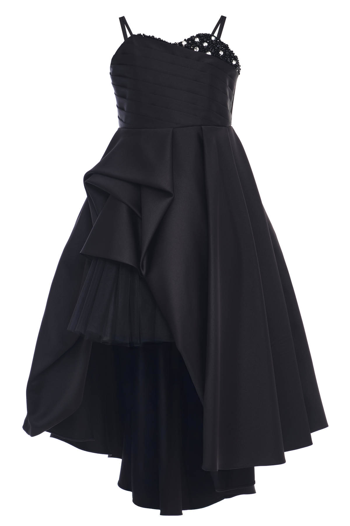 Black Girls Satin Bow Shoulder Dress with Overskirt Detail 8-15 AGE 36104PR Prices are visible only to registered business customers