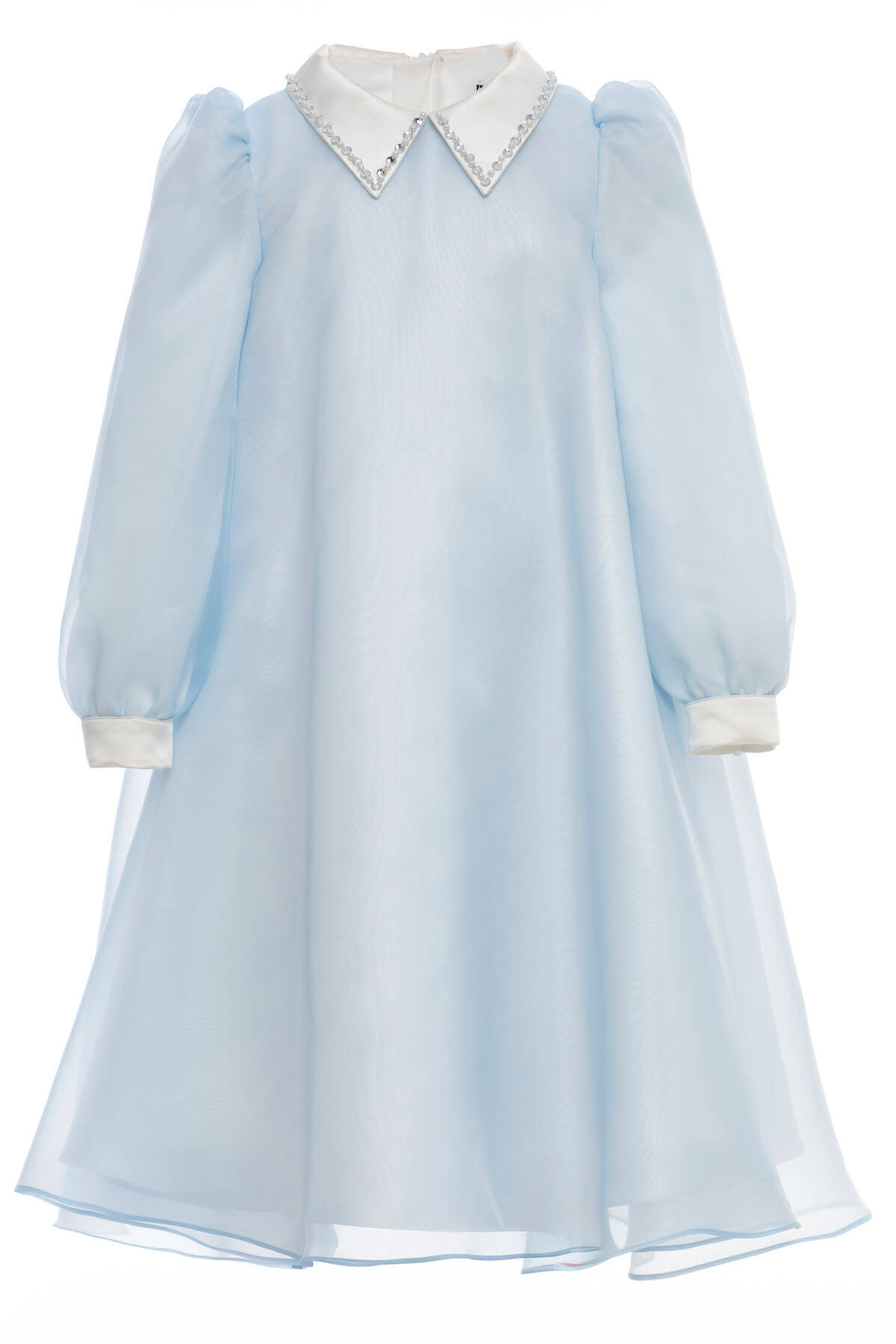 Blue Girls Chiffon A-Line Dress with Beaded Satin Collar 8-15 AGE 36391PR