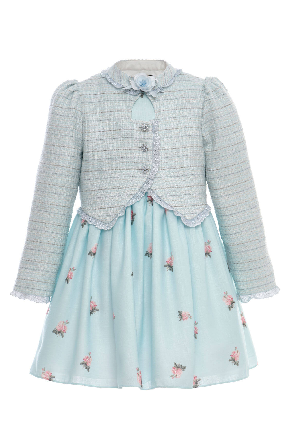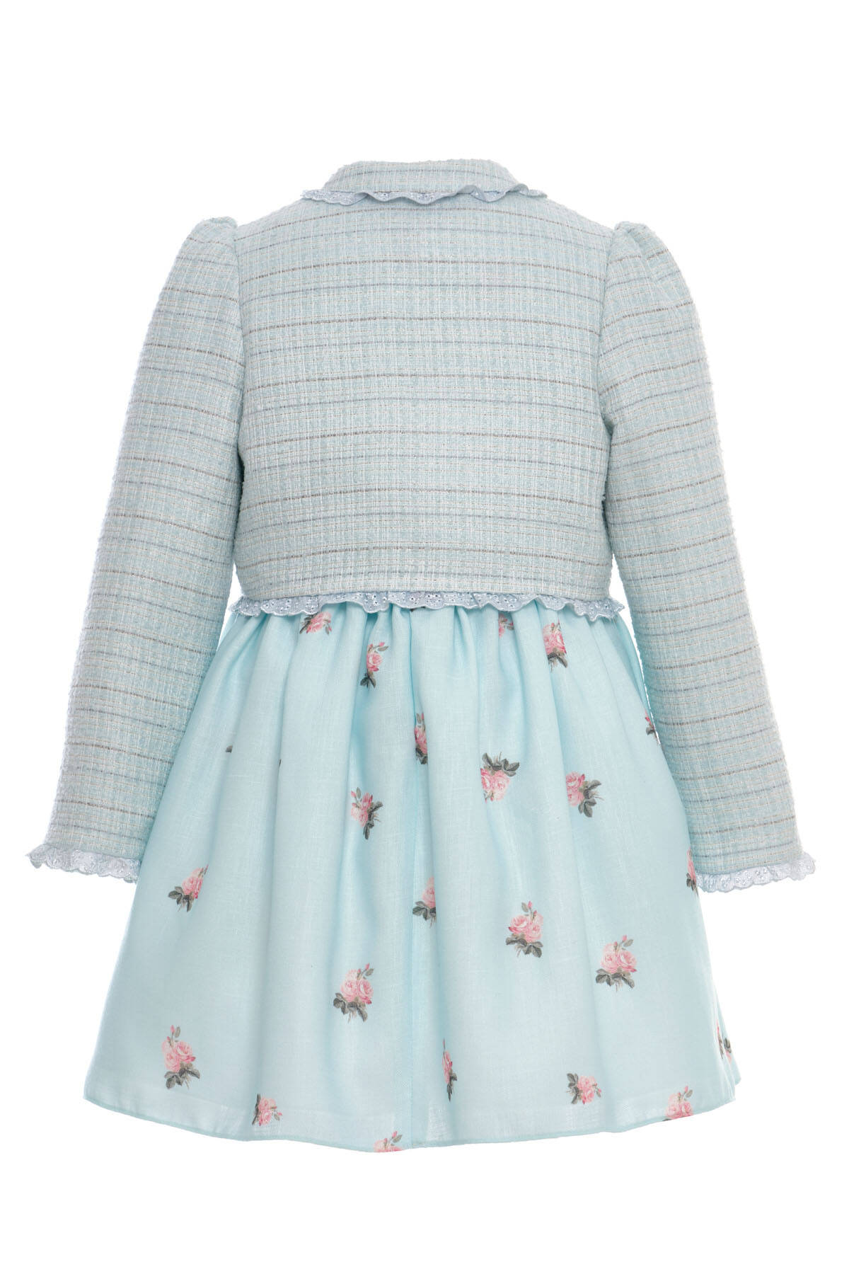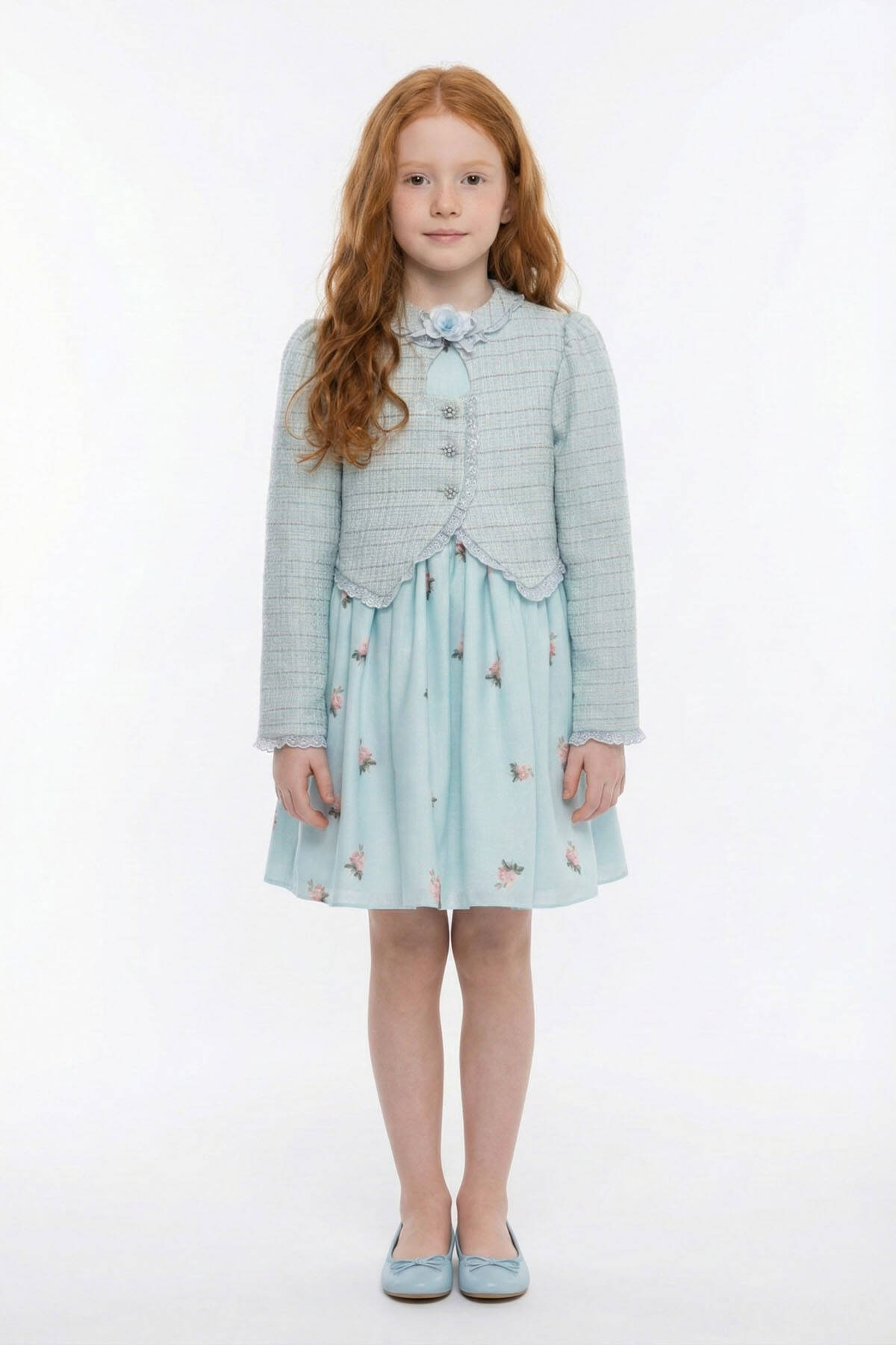 Girls Floral Dress & Tweed Jacket Set (3–7 Age):