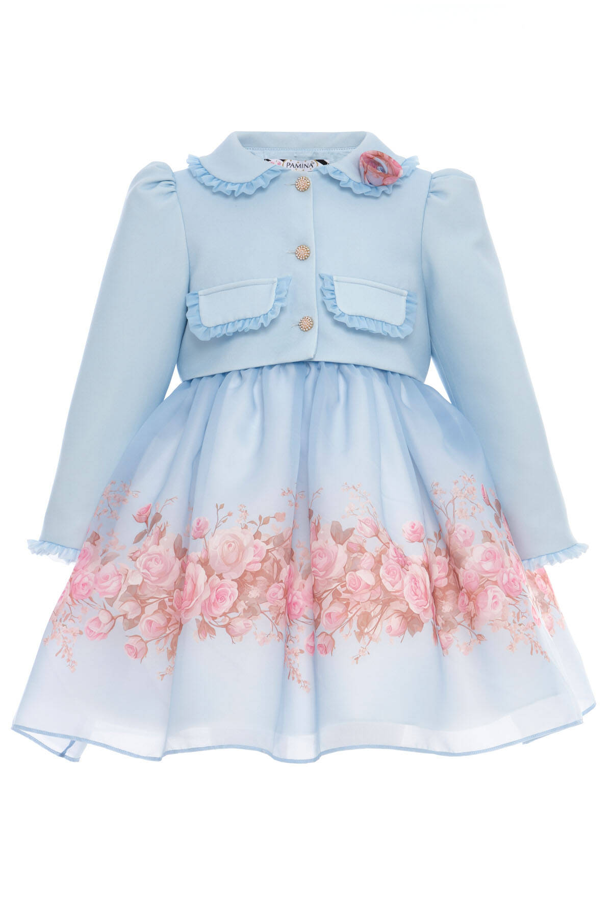 Blue Girls Floral Organza Dress with Jacket 3-7 AGE 36298PR