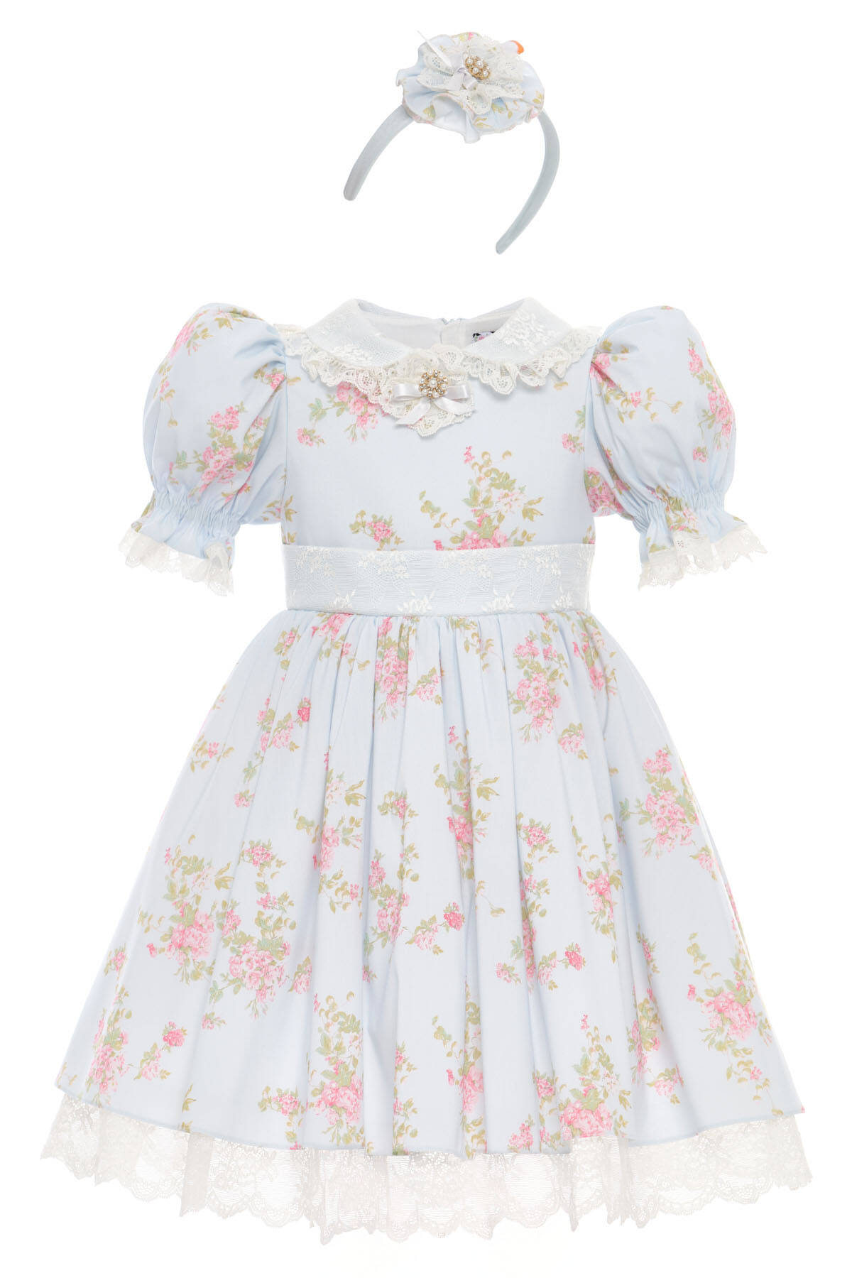 Blue Vintage-Inspired Floral Dress with Headband 3-7 AGE 36374PR