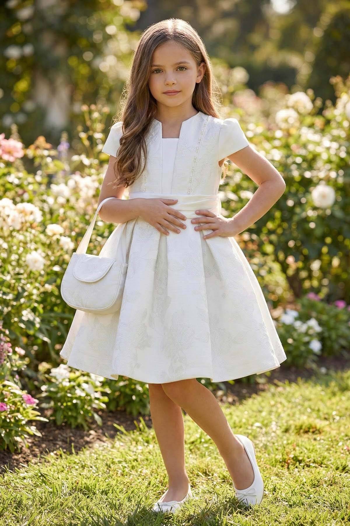 Elegant Jacquard Dress with Matching Purse – 2 Piece Set (3–7 Years):