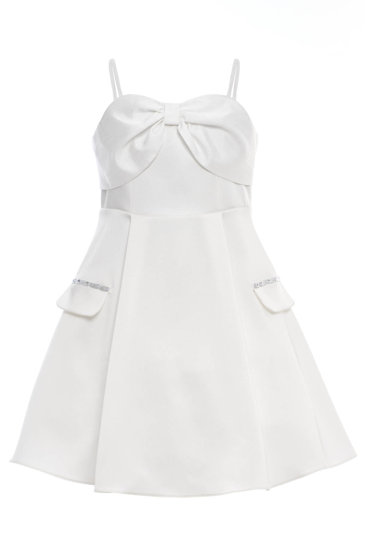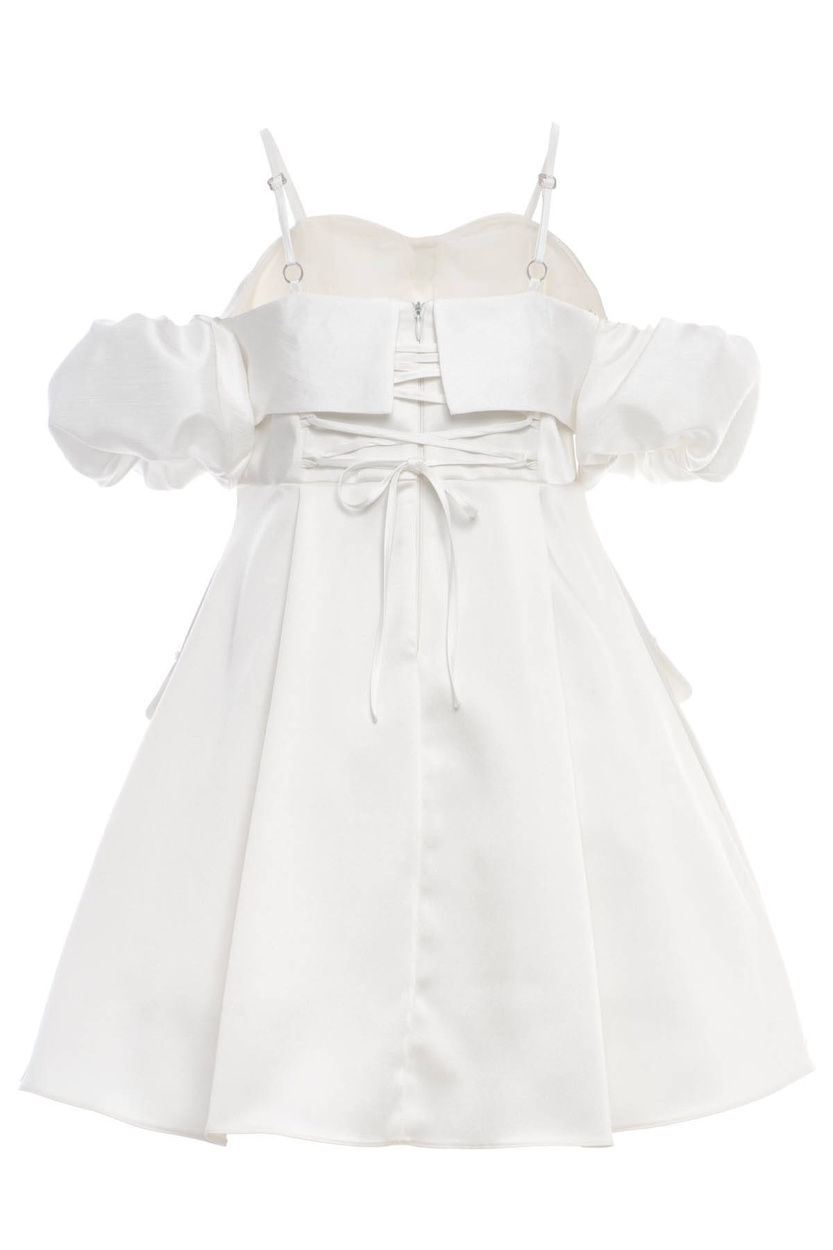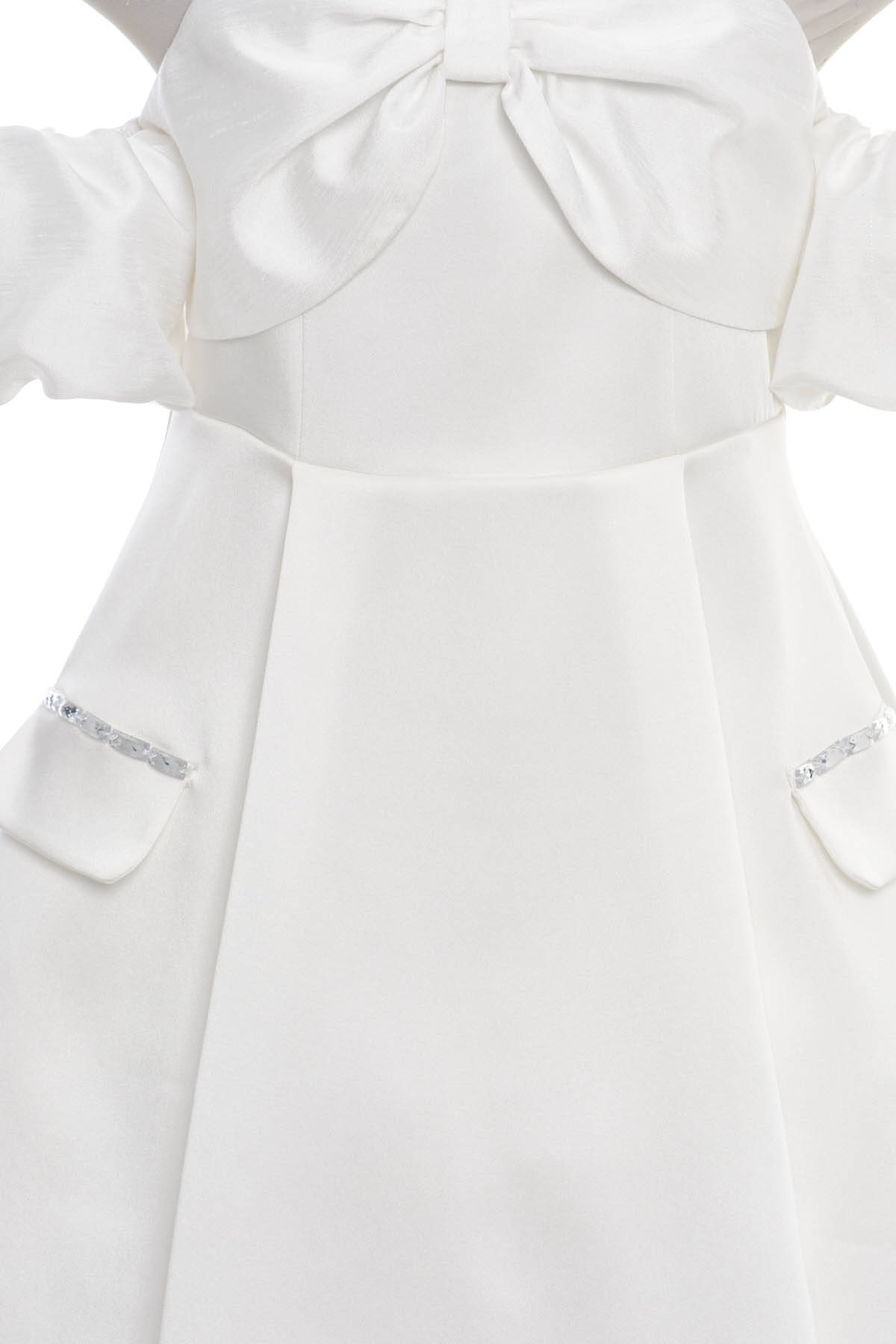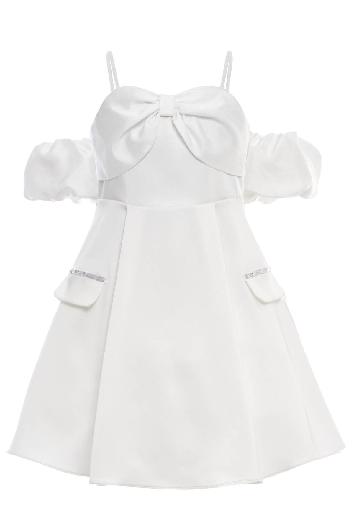 Ecru Girls Off-Shoulder Bow Dress with Puff Sleeves & Rhinestone Detail 8-15 AGE 36088PR