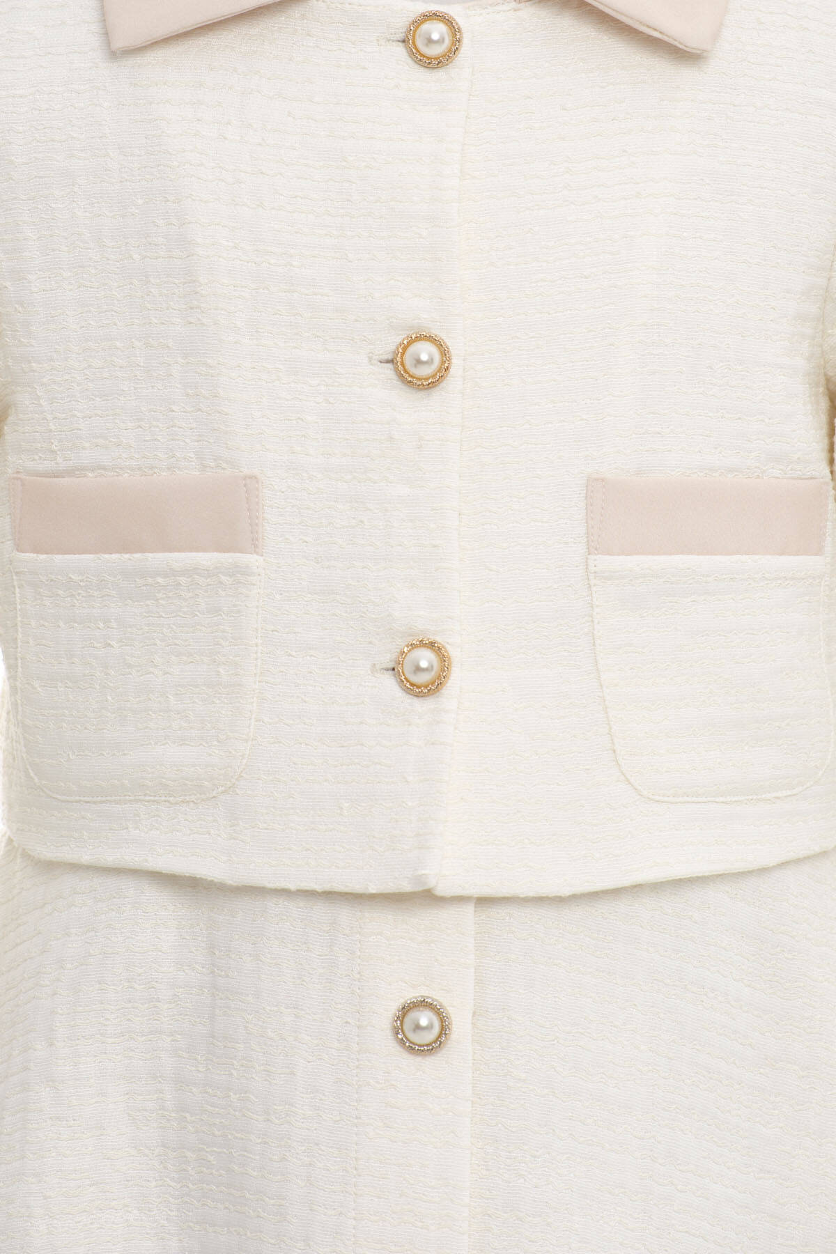 - Cropped jacket with pearl-detailed buttons and contrast collar