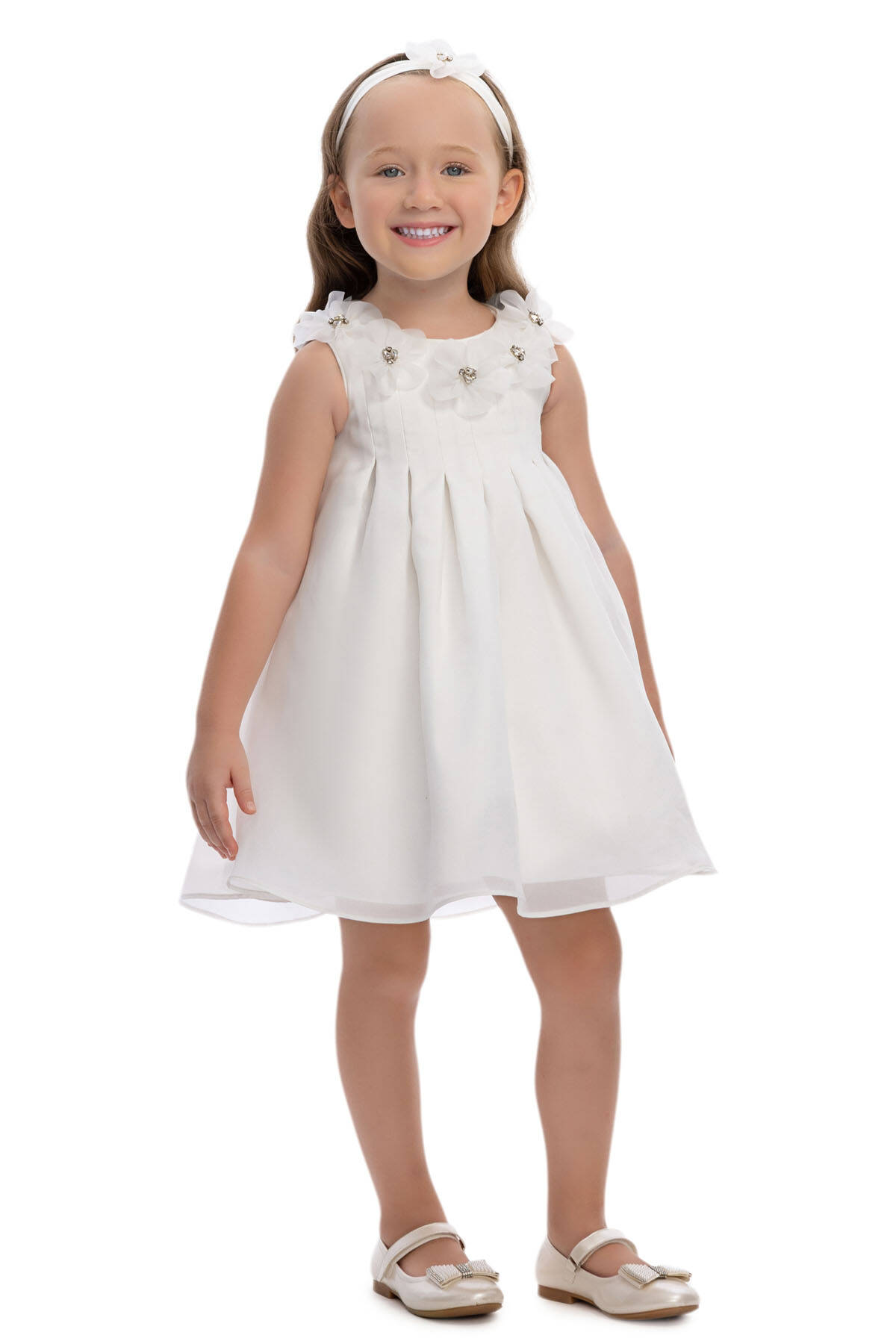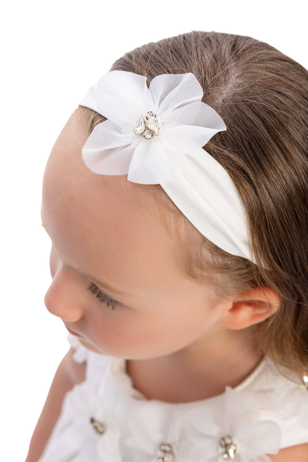 Ecru Chiffon Swing Dress with Pearl Flower Headband 3-7 AGE 36411PR Prices are visible only to registered business customers