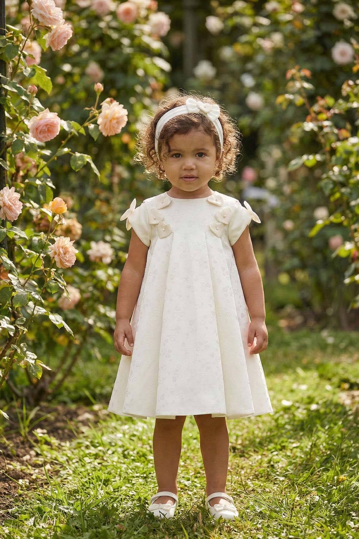 Ecru Chiffon Swing Dress with Pearl Flower Headband 3-7 AGE 36411PR Prices are visible only to registered business customers