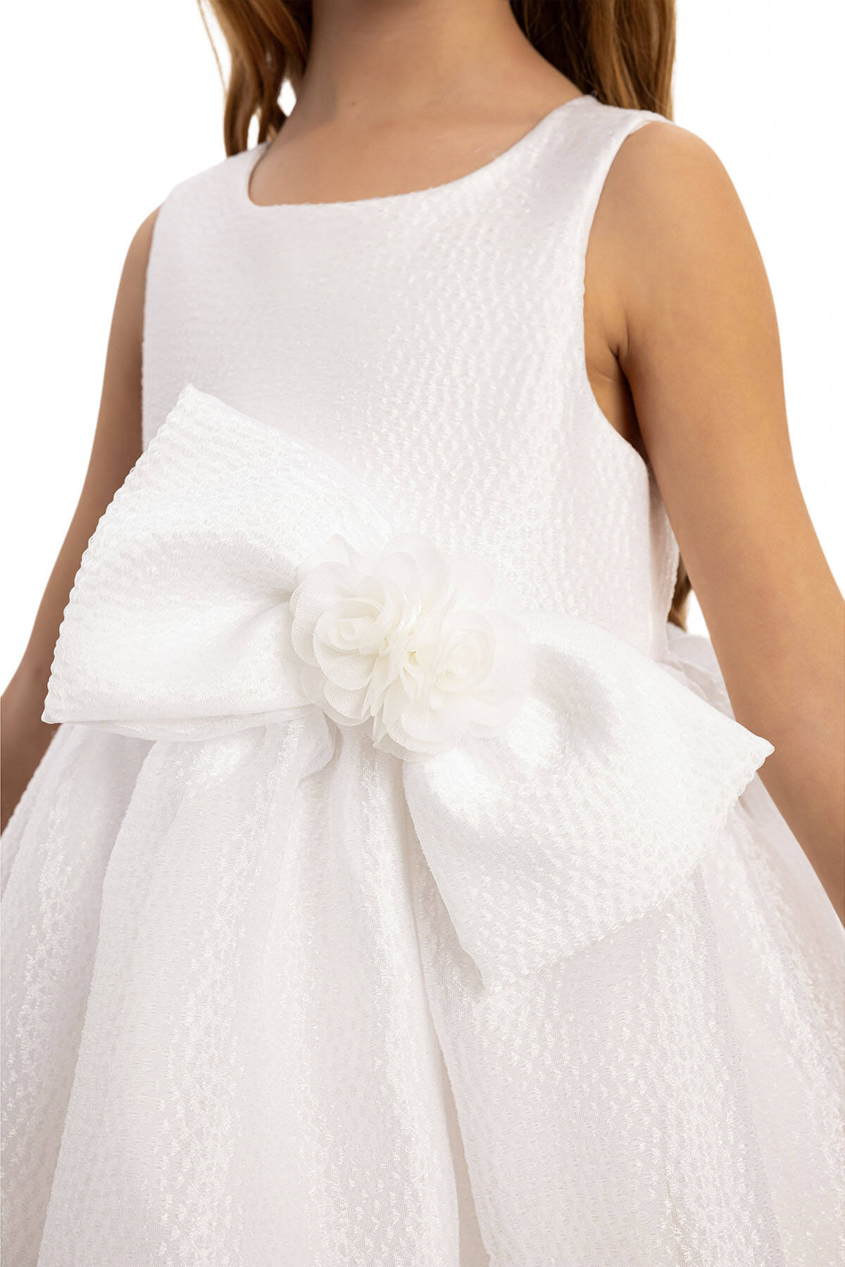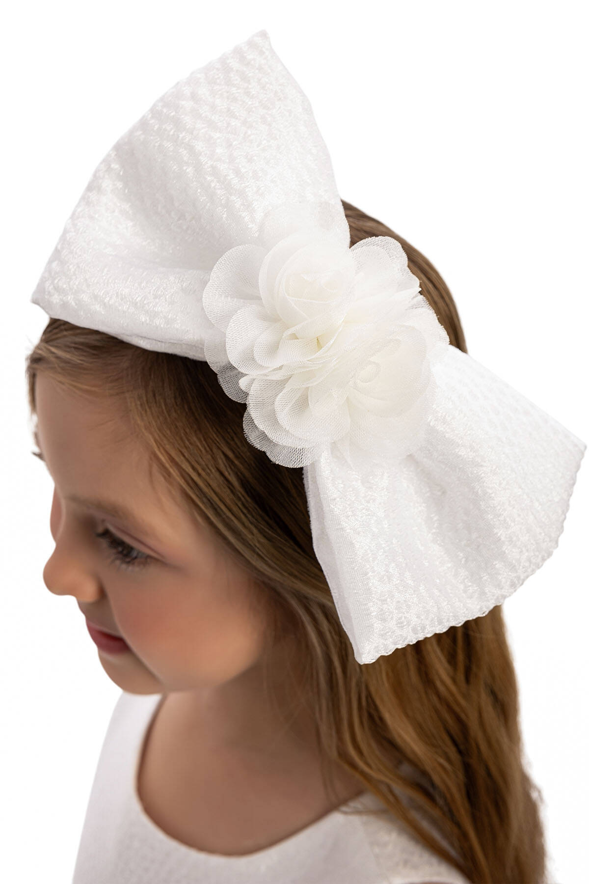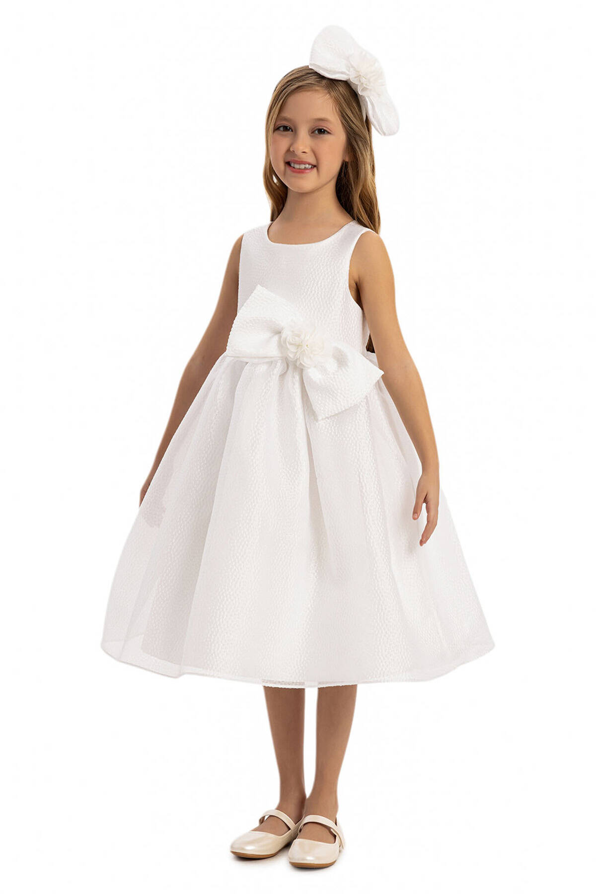 Ecru Bow Dress with Hair Accessory 3-7 AGE 35347PR