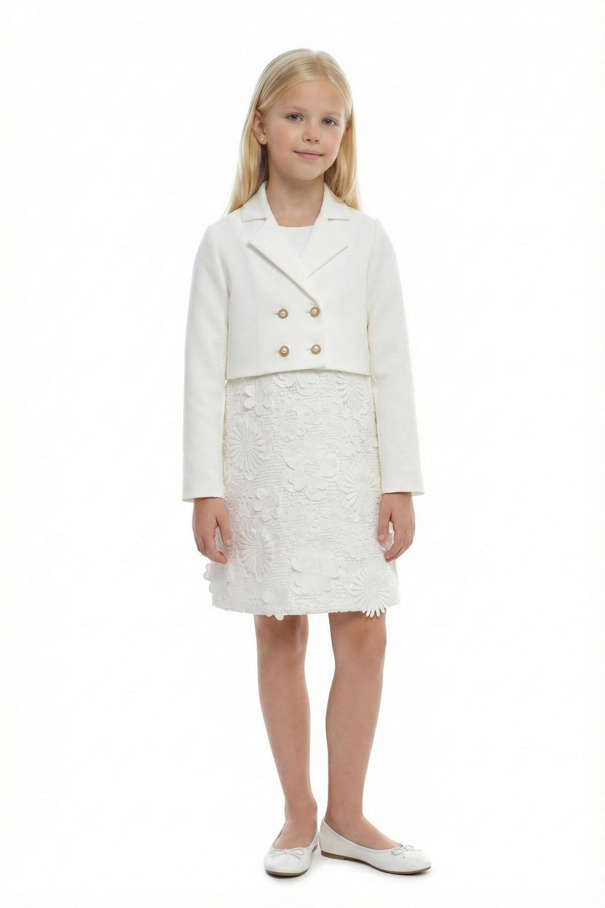 Ecru Girls Floral Lace Dress & Jacket Set 8-15 AGE 36363PR