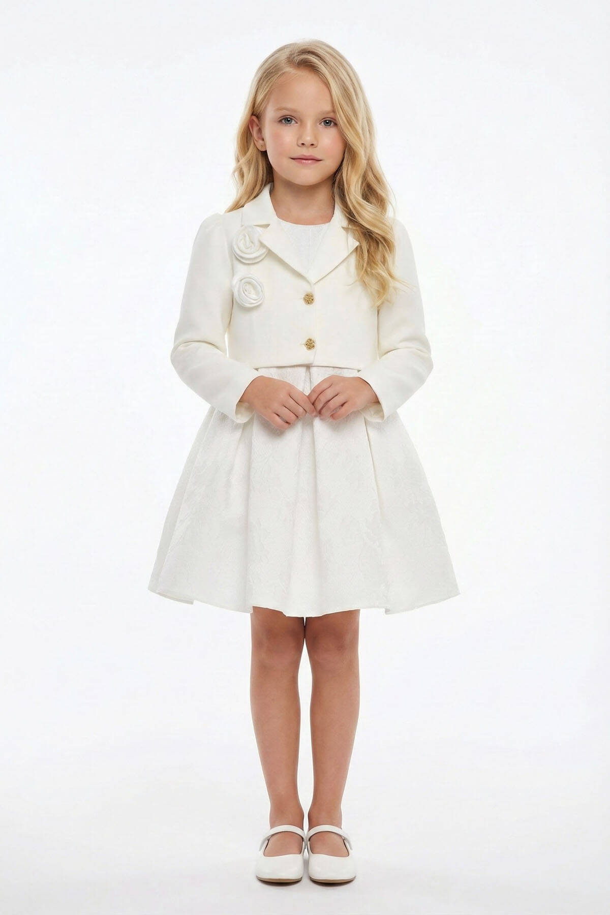 Ecru Girls Jacquard Dress with Bolero 3-7 AGE 36342PR