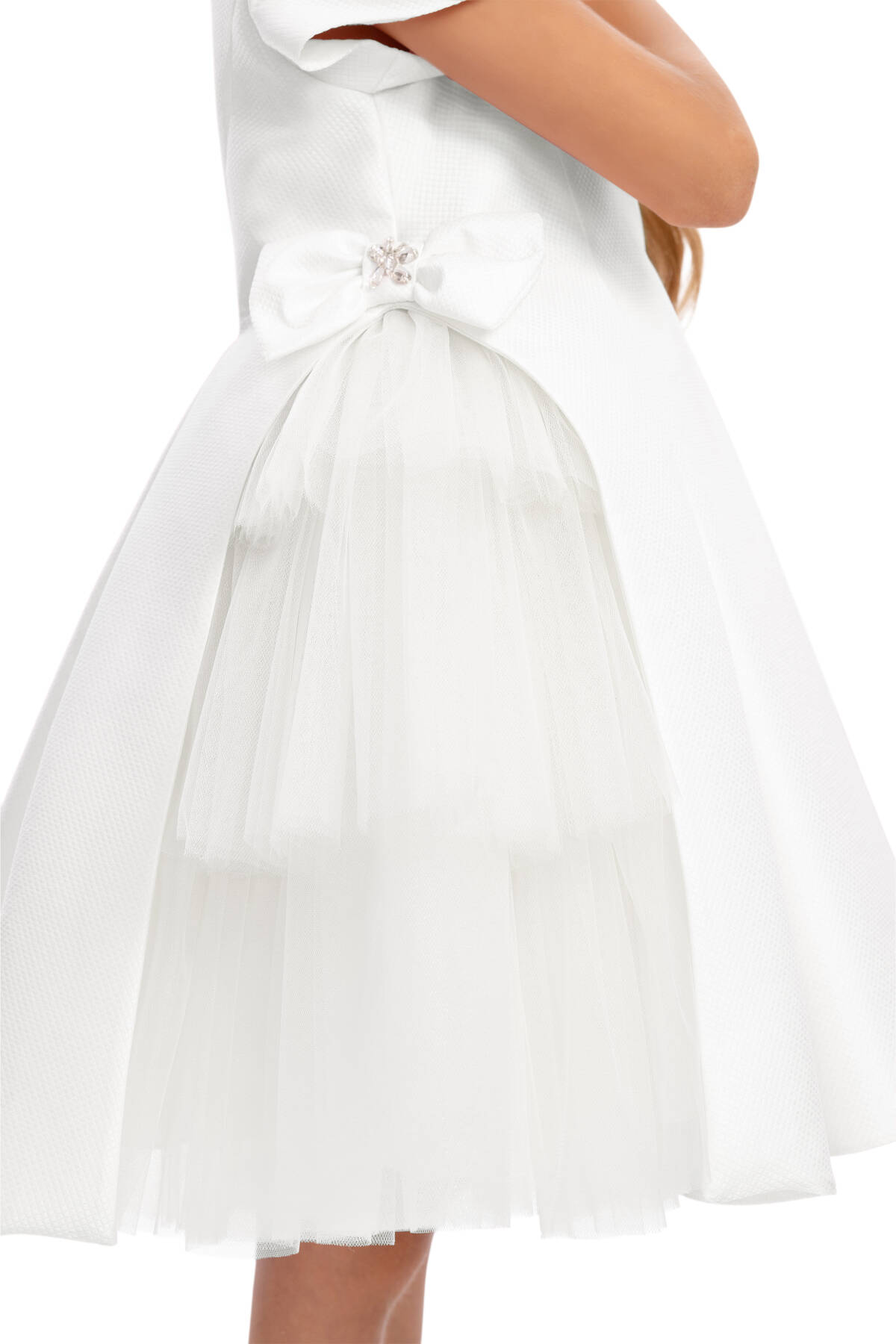 Ecru Girls Layered Tulle Side-Bow Dress 3-7 AGE 36306PR