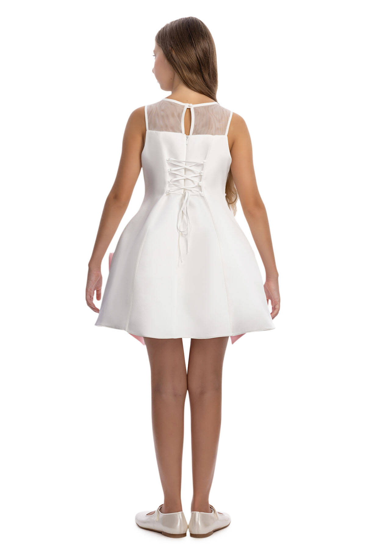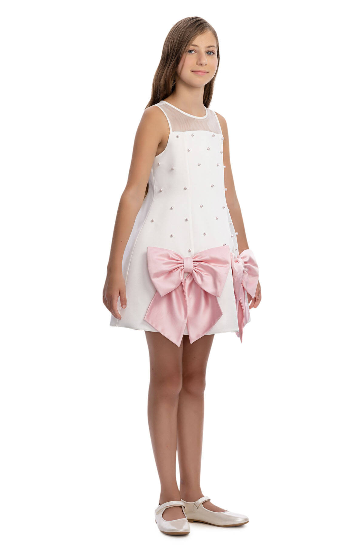 Ecru Girls Pearl Bow Dress 8-14 AGE 36110PR