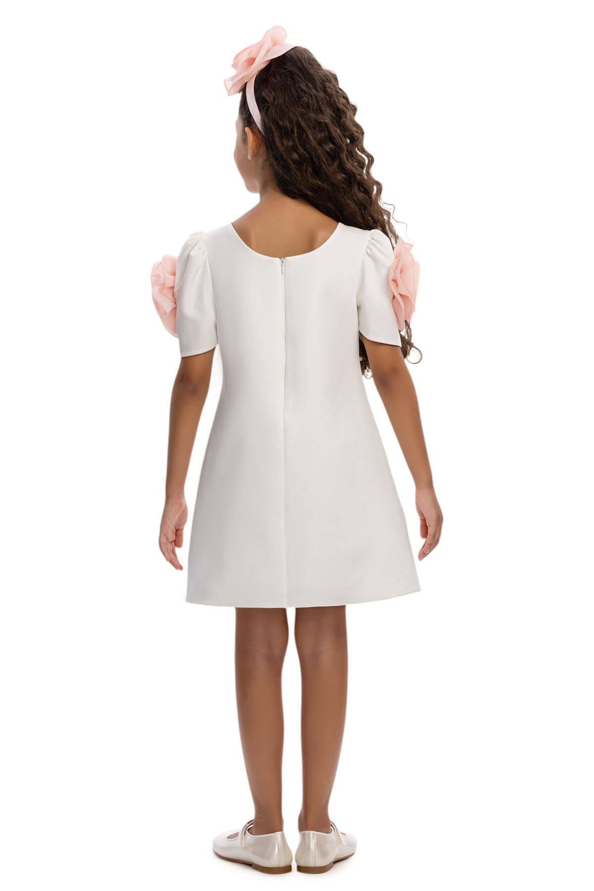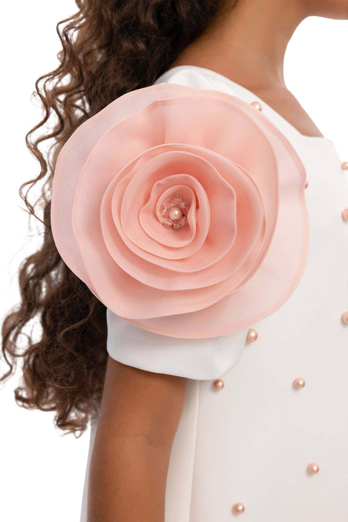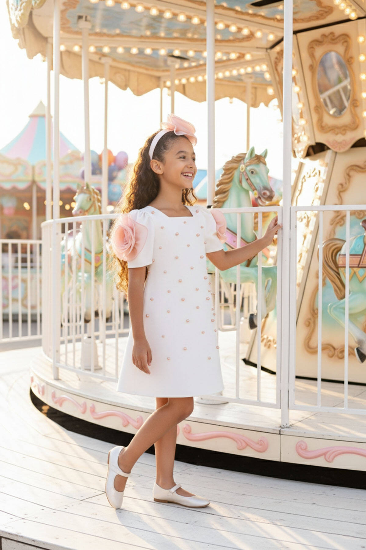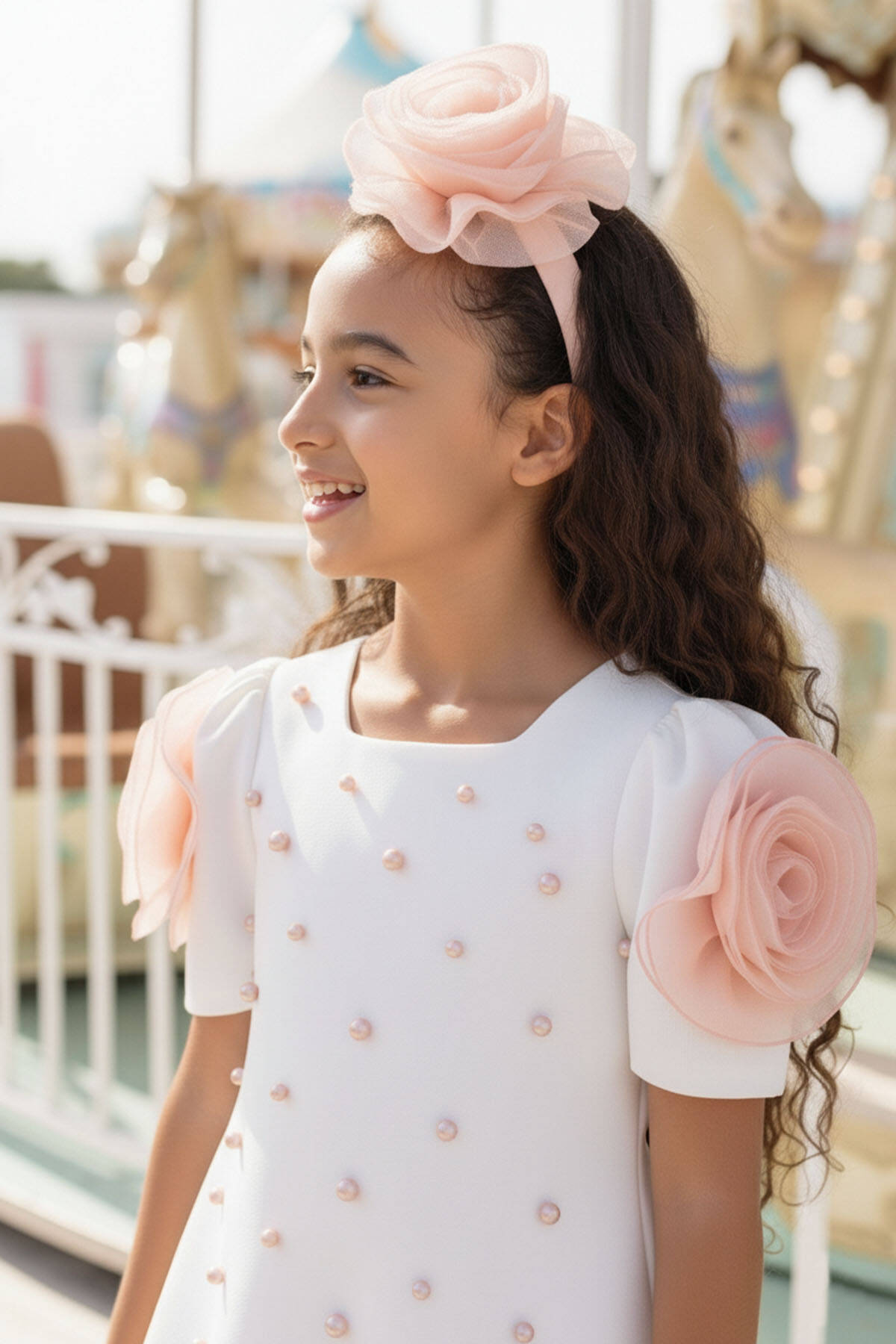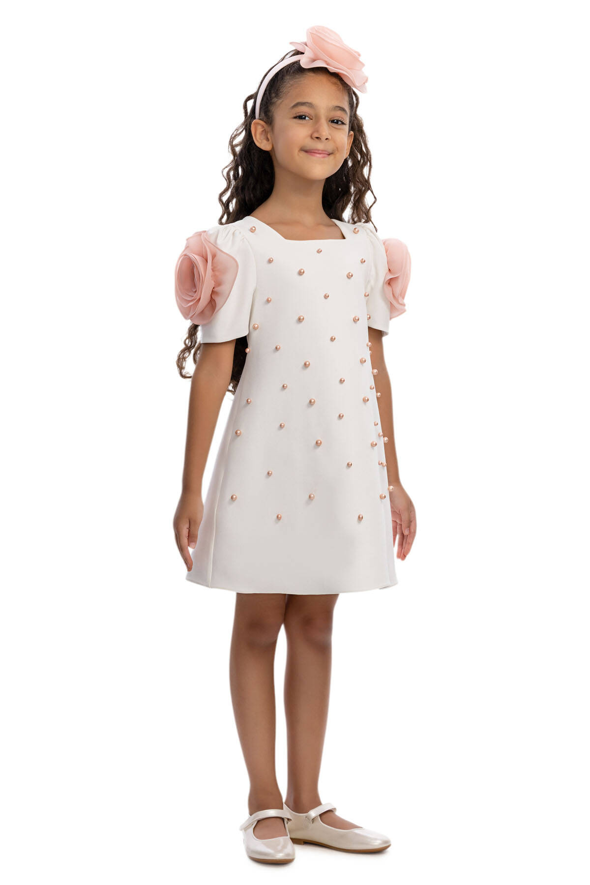 Girls Pearl Flower Sleeve Dress (3–7 Age):