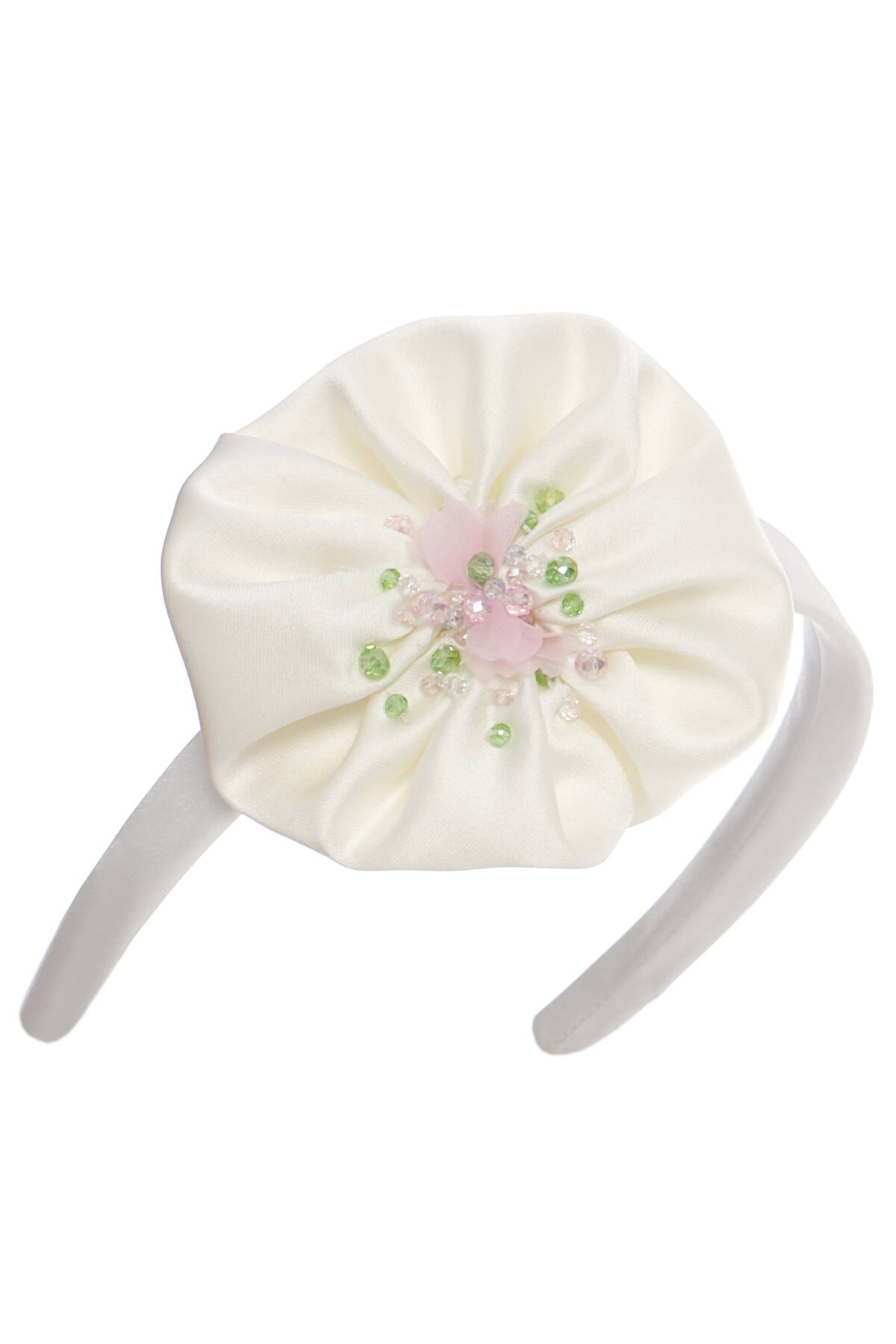 Girls Satin Dress with Removable Floral Collar & Hair Accessory (3–7 Years):
