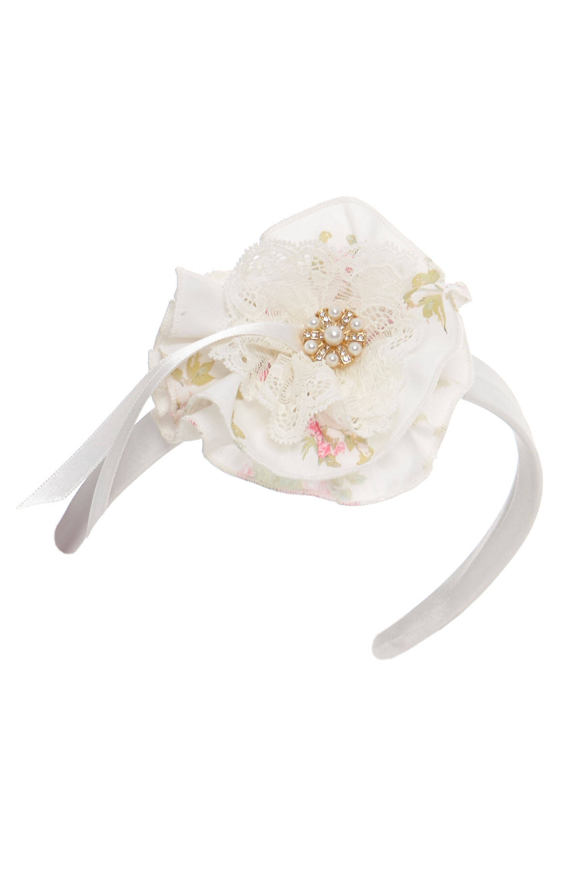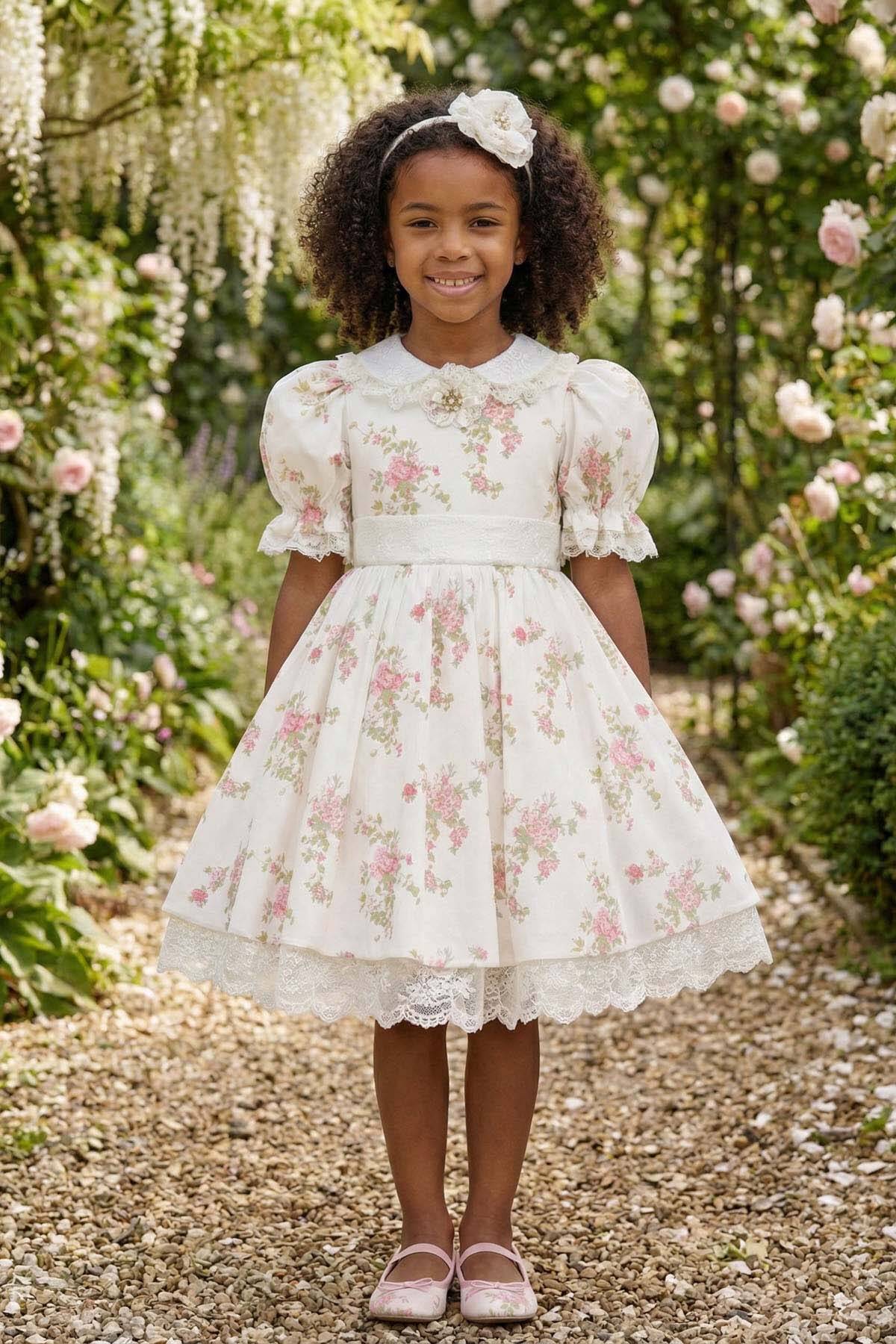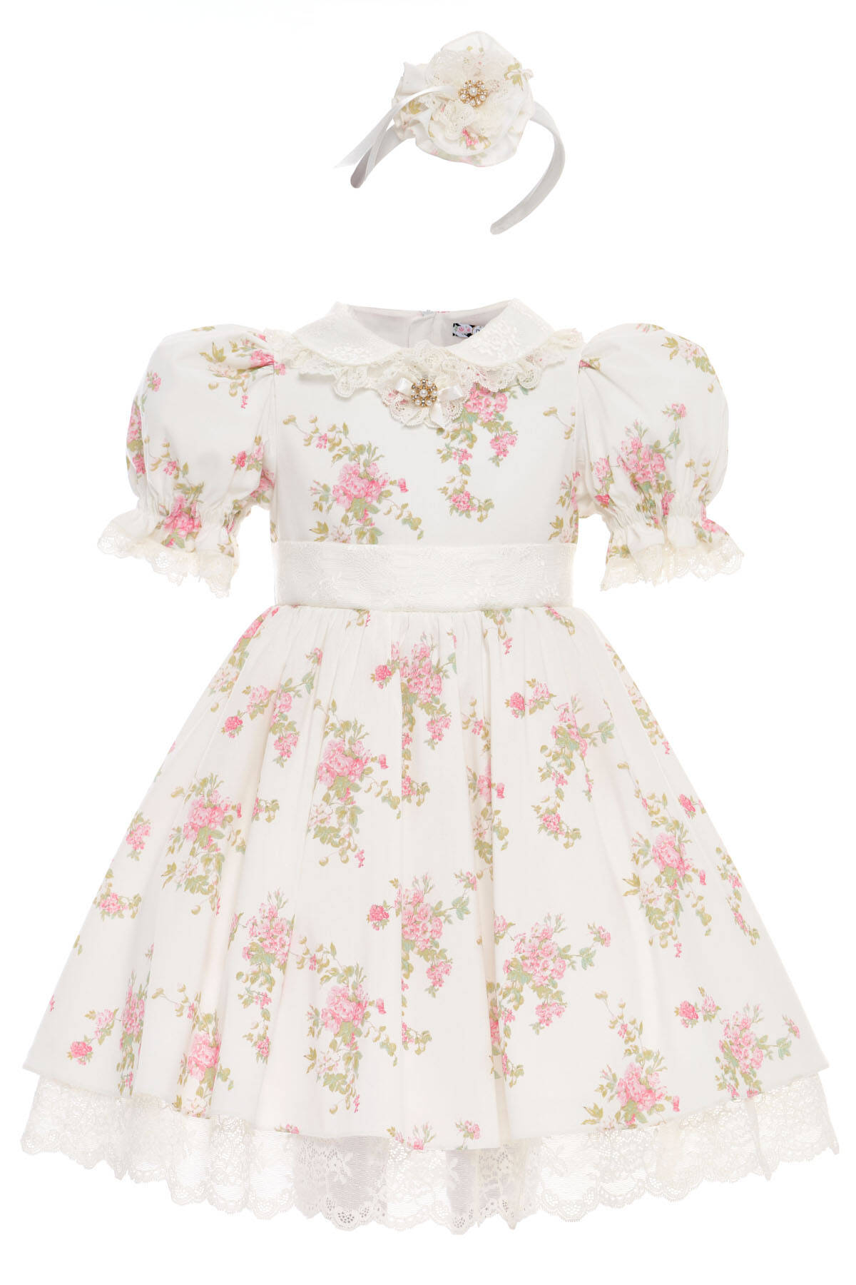Ecru Vintage-Inspired Floral Dress with Headband 3-7 AGE 36374PR