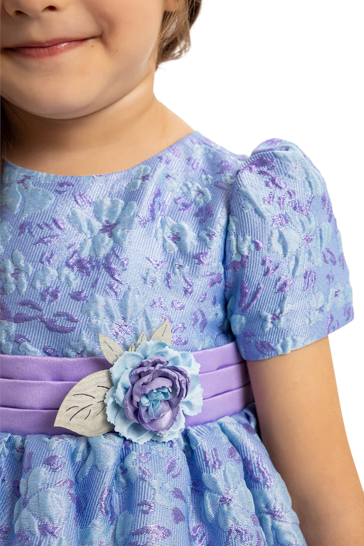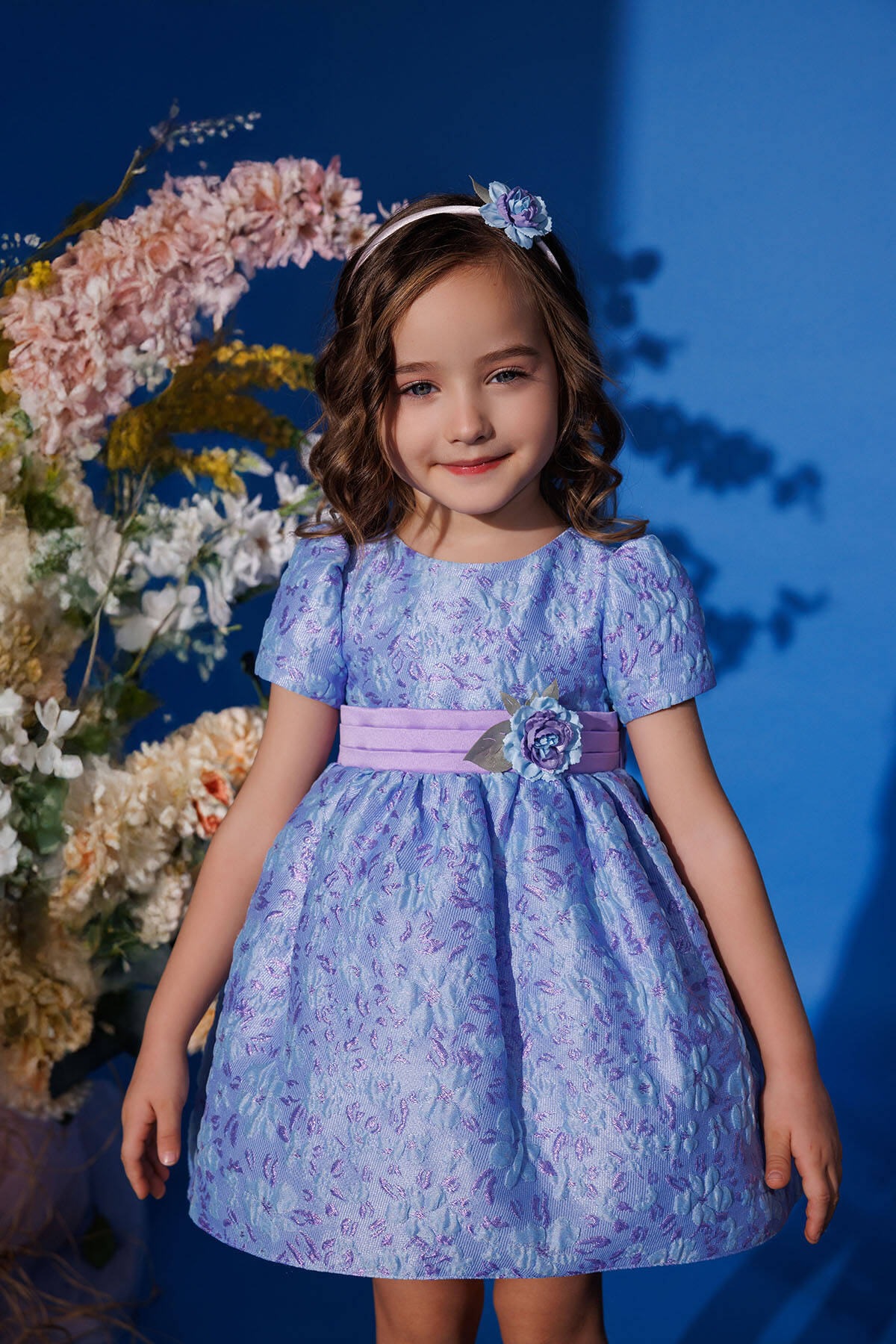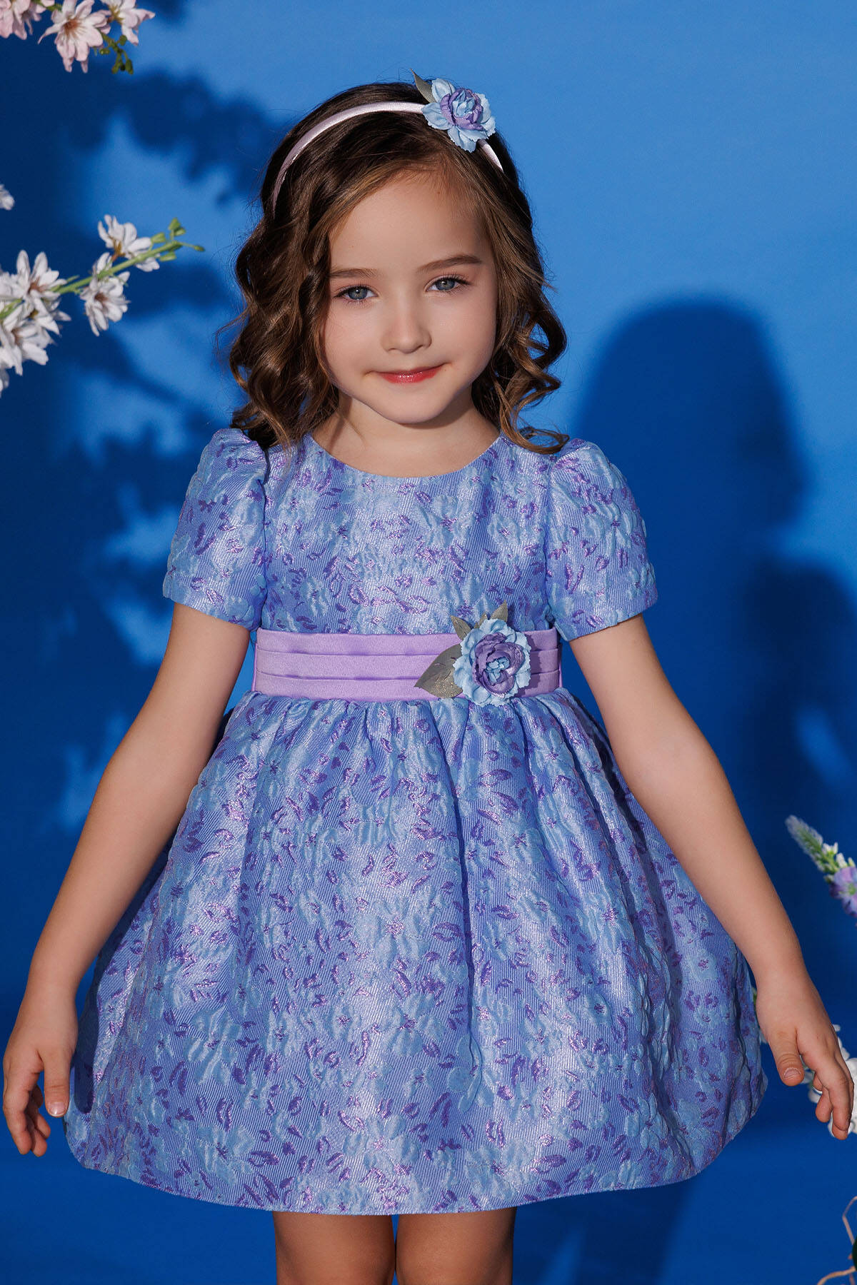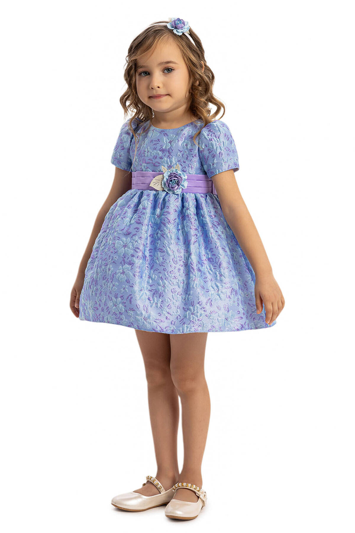 Make your little one the center of attention with this delightful baby dress set, complete with a matching headband. Perfectly suited for special occasions, this dress features soft floral embroidery, a charming bow at the back, and delicate pastel hues of powder pink and lilac. The satin waistband with a floral embellishment adds a touch of elegance, while the lightweight fabric ensures all-day comfort. A coordinating headband with a floral accent completes the adorable look, making it ideal for birthdays, celebrations, or family photoshoots.