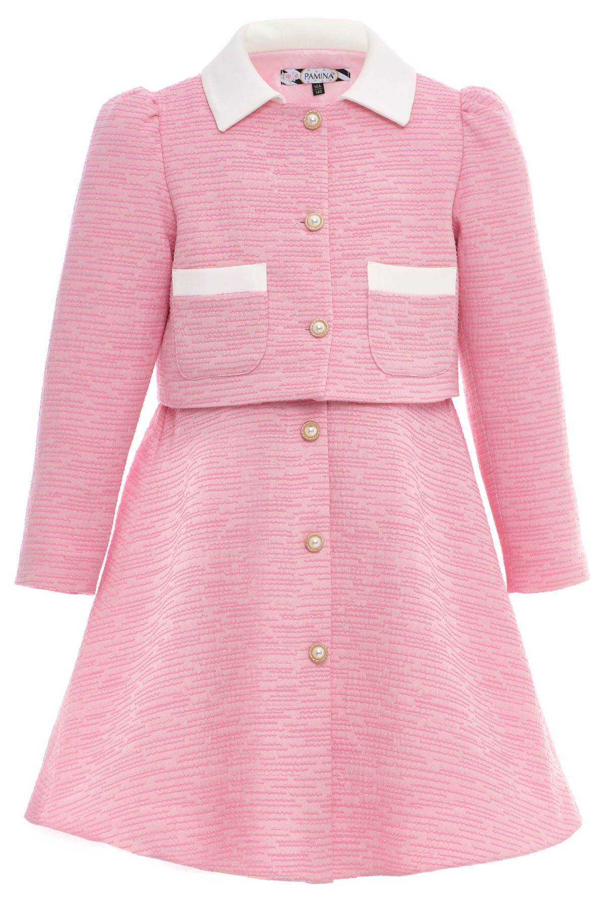 Pink Girls Textured Dress & Jacket Set 8-14 AGE 36346PR