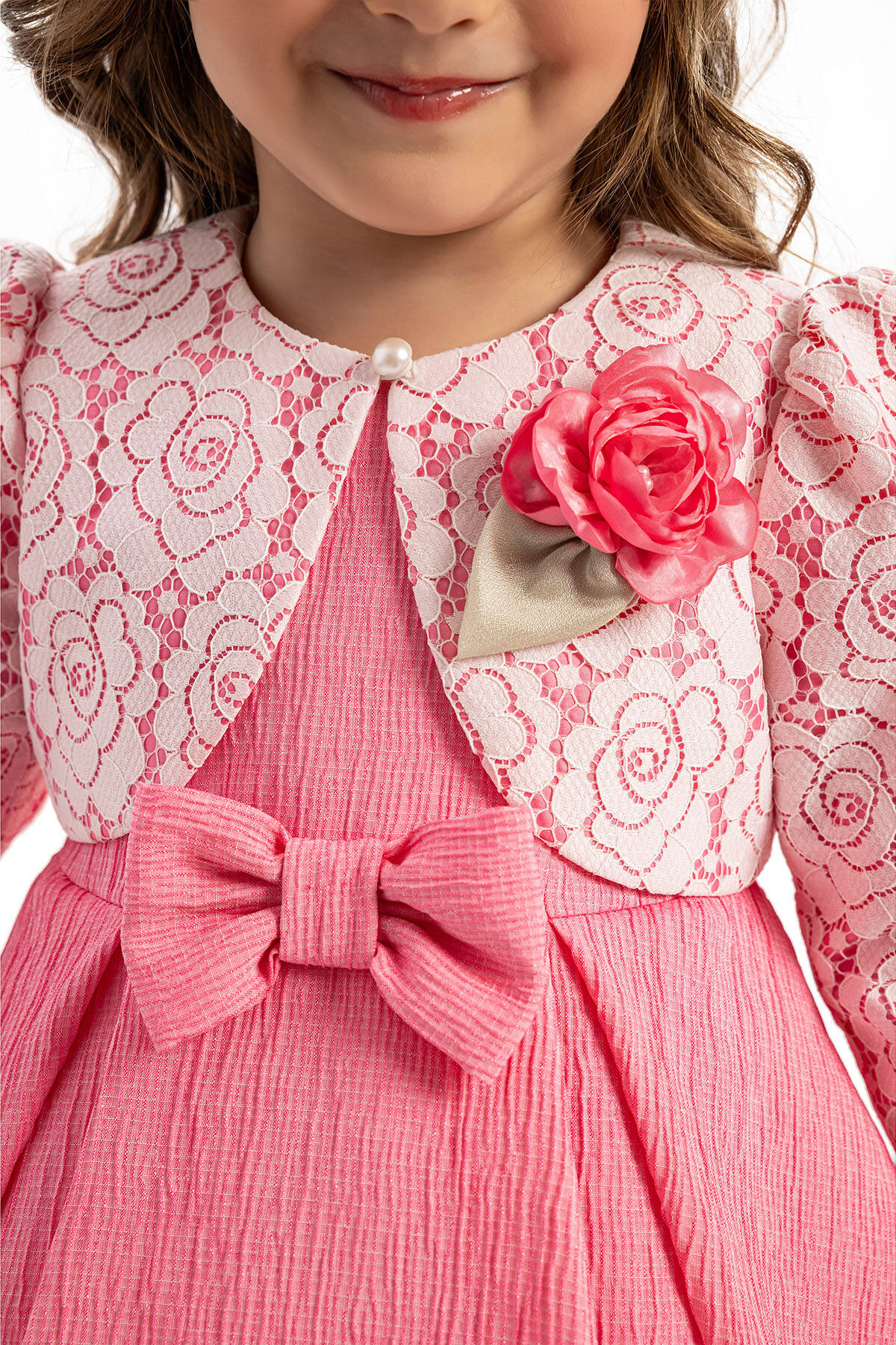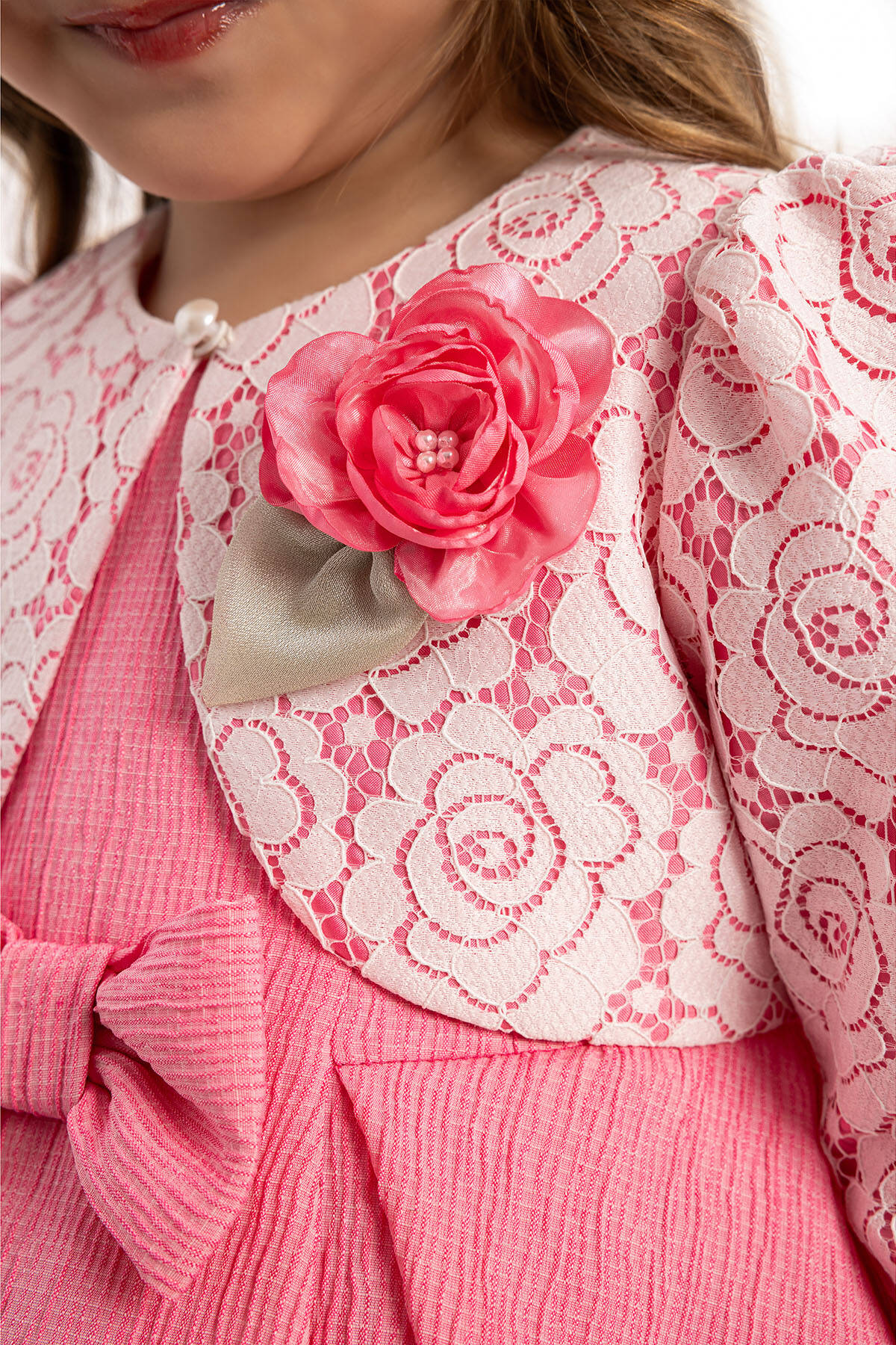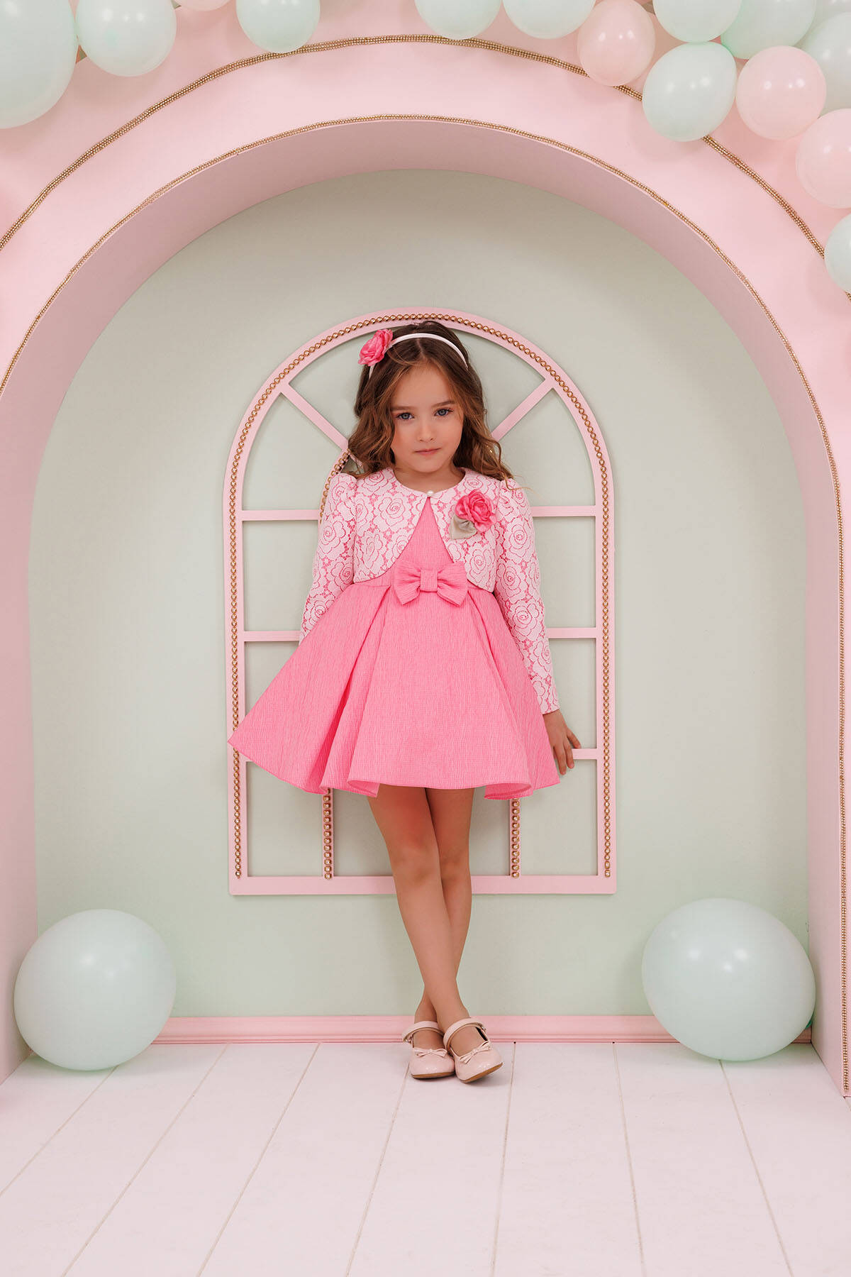 Add a touch of elegance to your little one’s wardrobe with this adorable 3-piece set! Featuring a charming dress with bow detailing, a delicate lace jacket adorned with a floral brooch, and a matching floral headband, this outfit is perfect for special occasions. Designed with soft and breathable fabric for maximum comfort, it’s the ideal choice for birthdays, family celebrations, or festive gatherings.