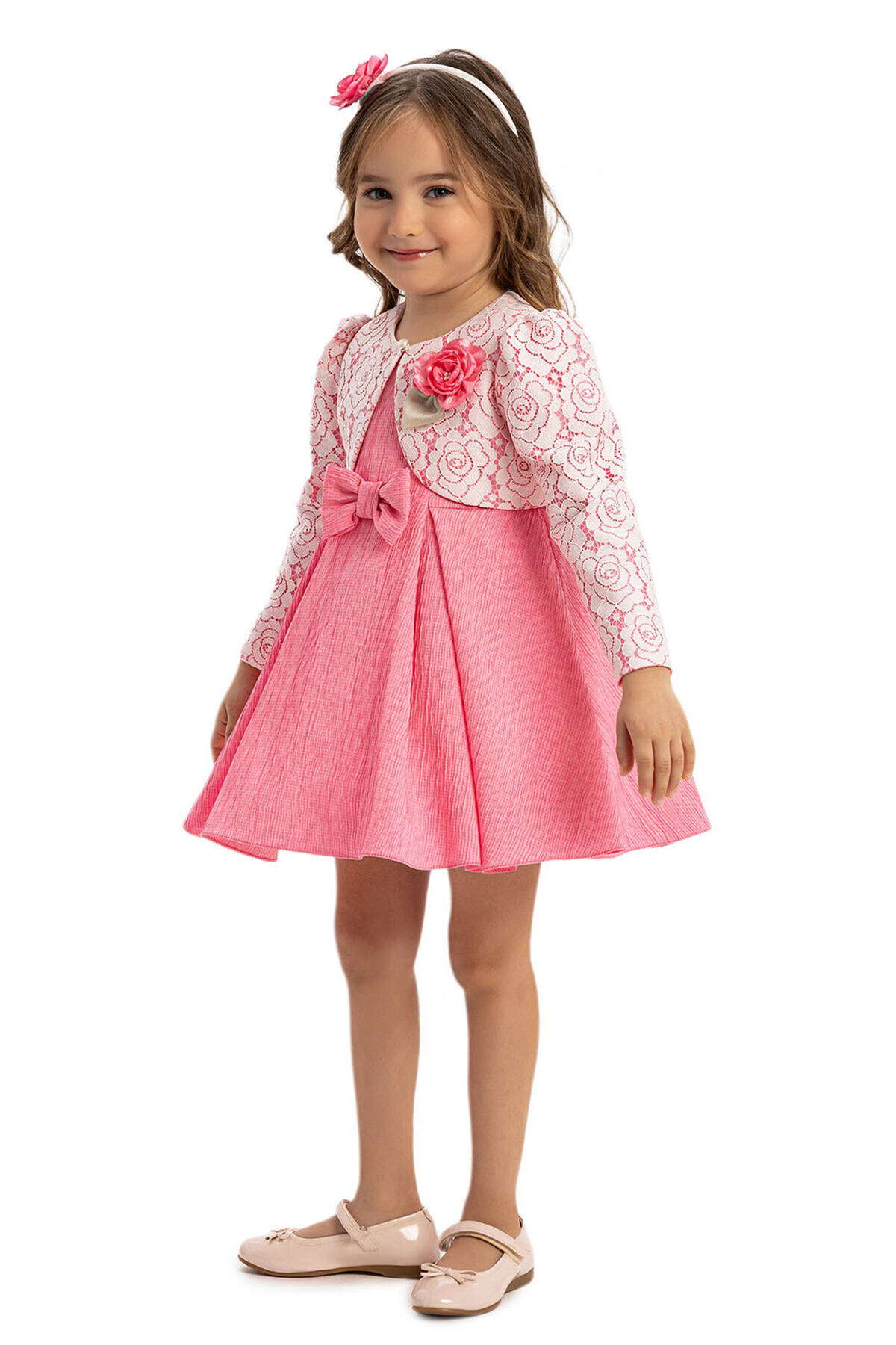 Baby Dress with Lace Bolero and Hair Accessory (6-24 Months):