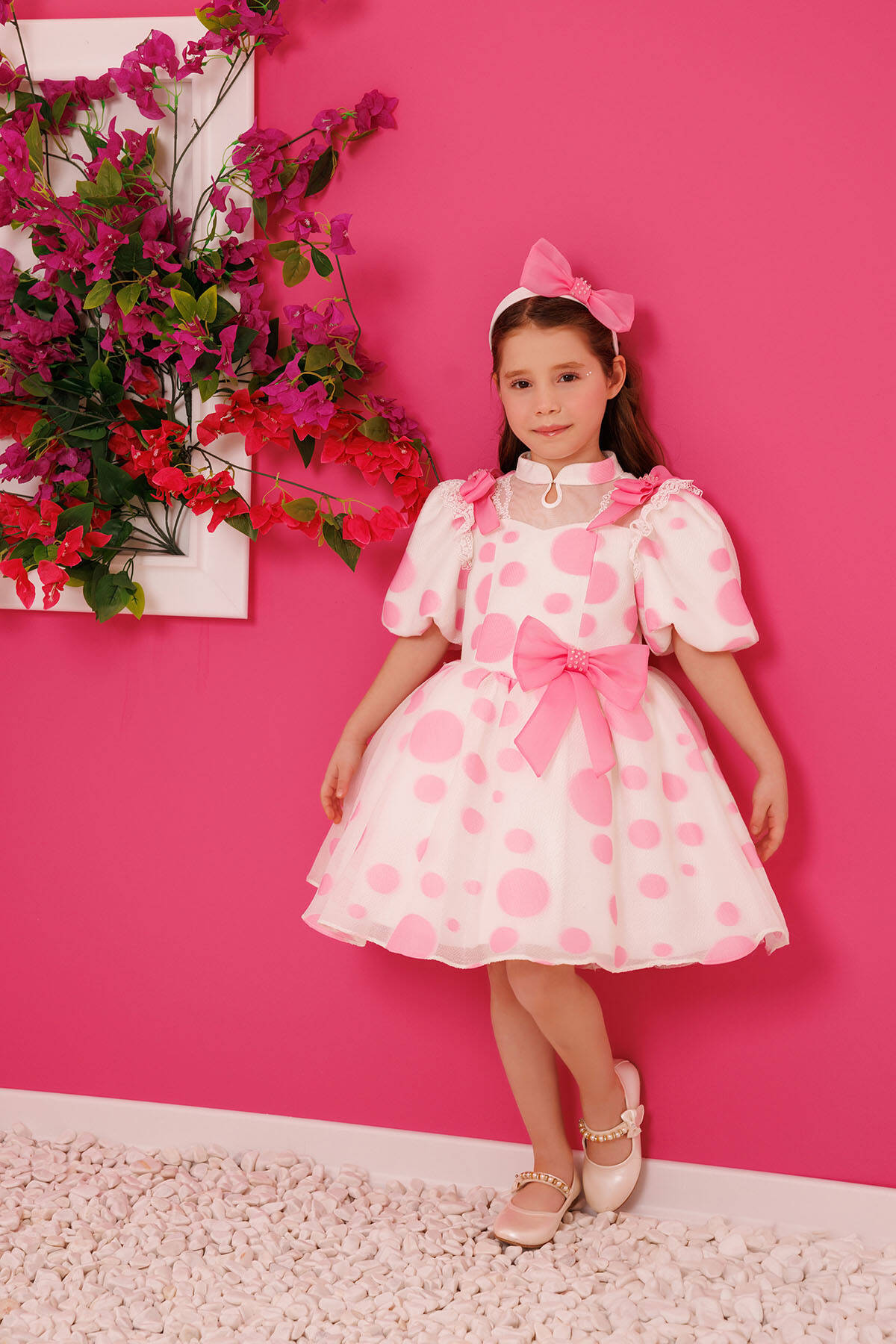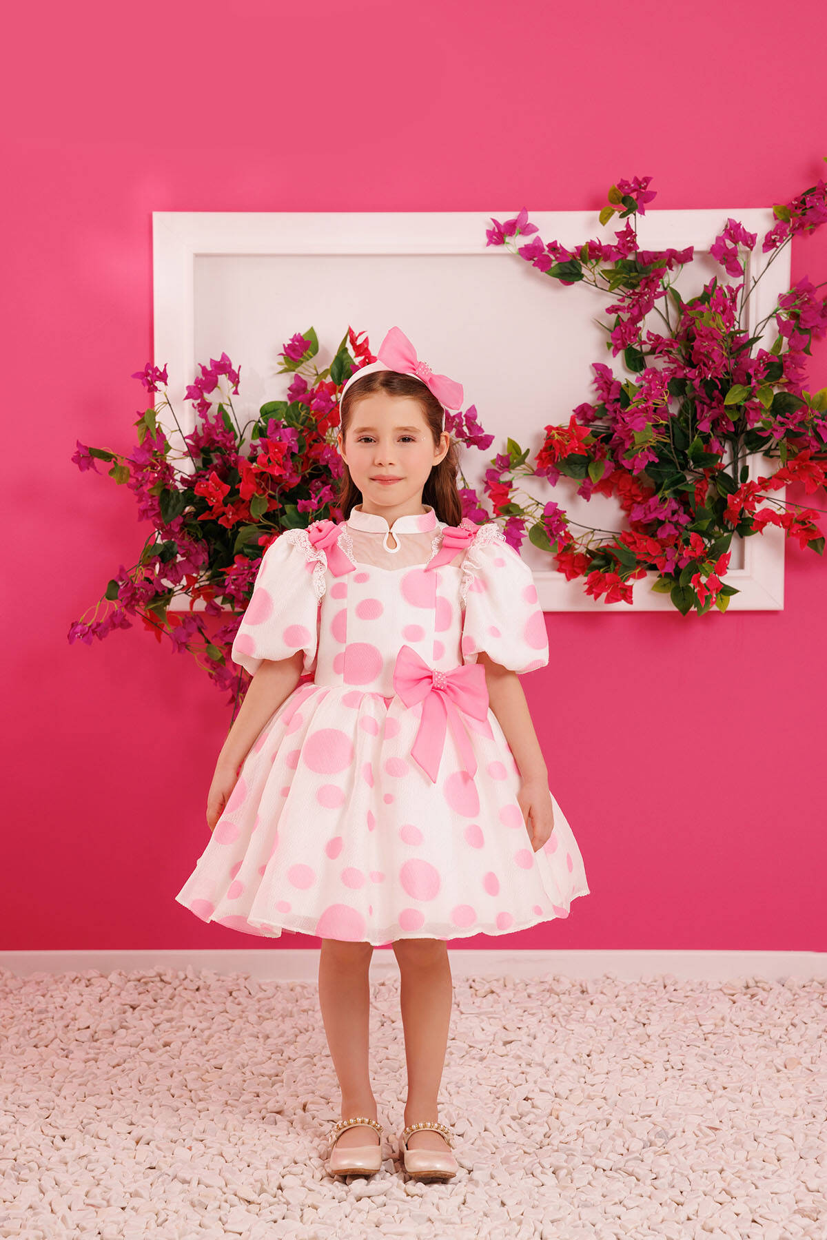 Polka Dot Dress with Hair Accessory (3-7 Age):