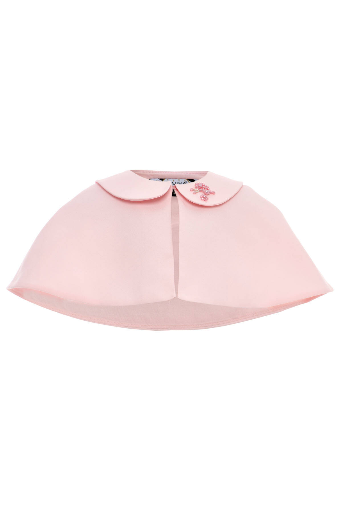A charming bolero-style capelet designed for your little one’s most special moments. Made from soft, structured fabric, this piece features a rounded Peter Pan collar and delicate beaded flower embellishment for a subtle sparkle. Its lightweight and sleeveless design makes it a perfect layering piece over dresses, ideal for weddings, christenings, or formal events.