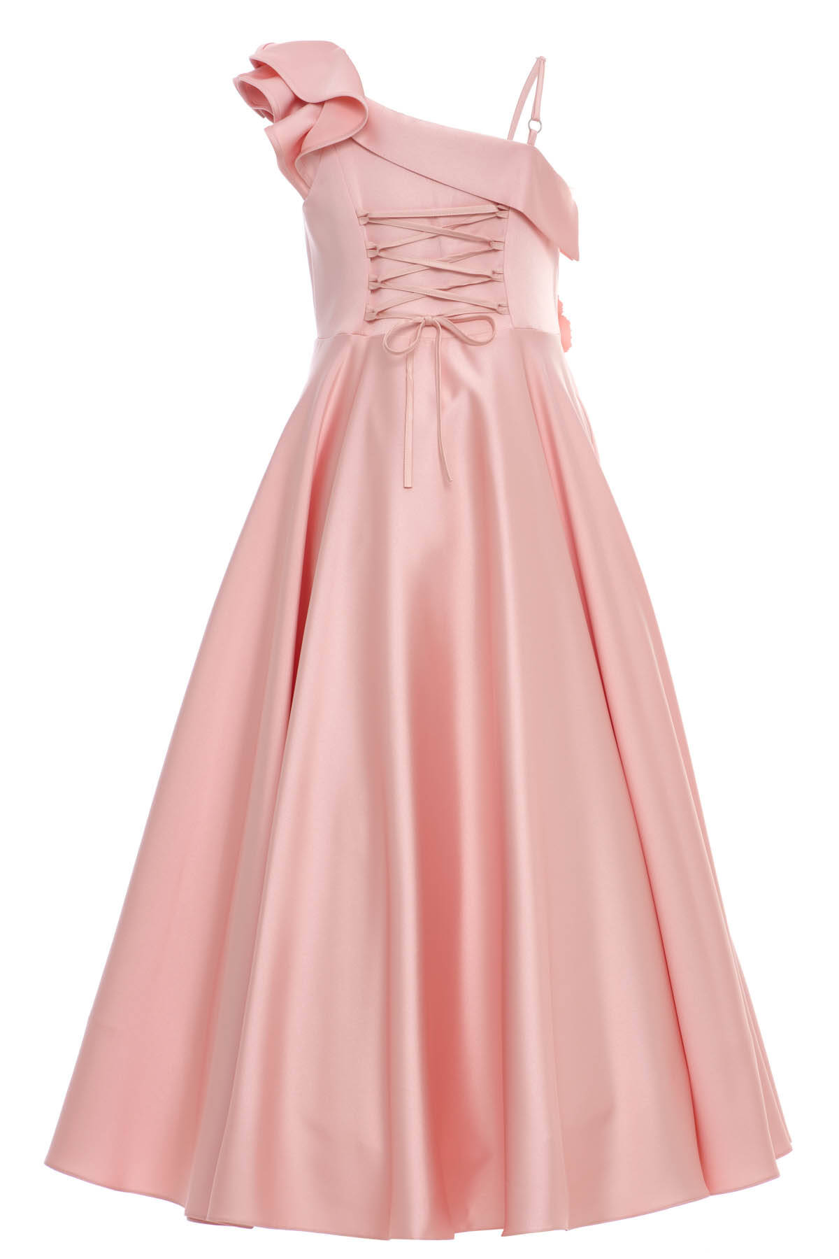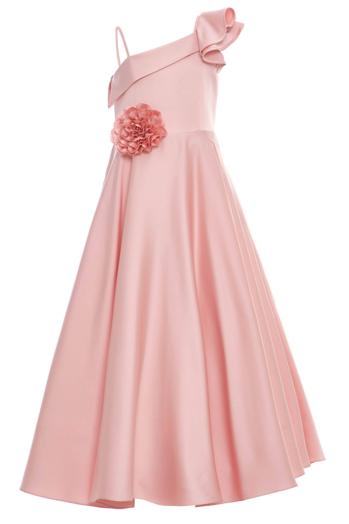 Powder Girls One-Shoulder Satin Gown with 3D Flower Appliqué 8-15 AGE 36073PR
