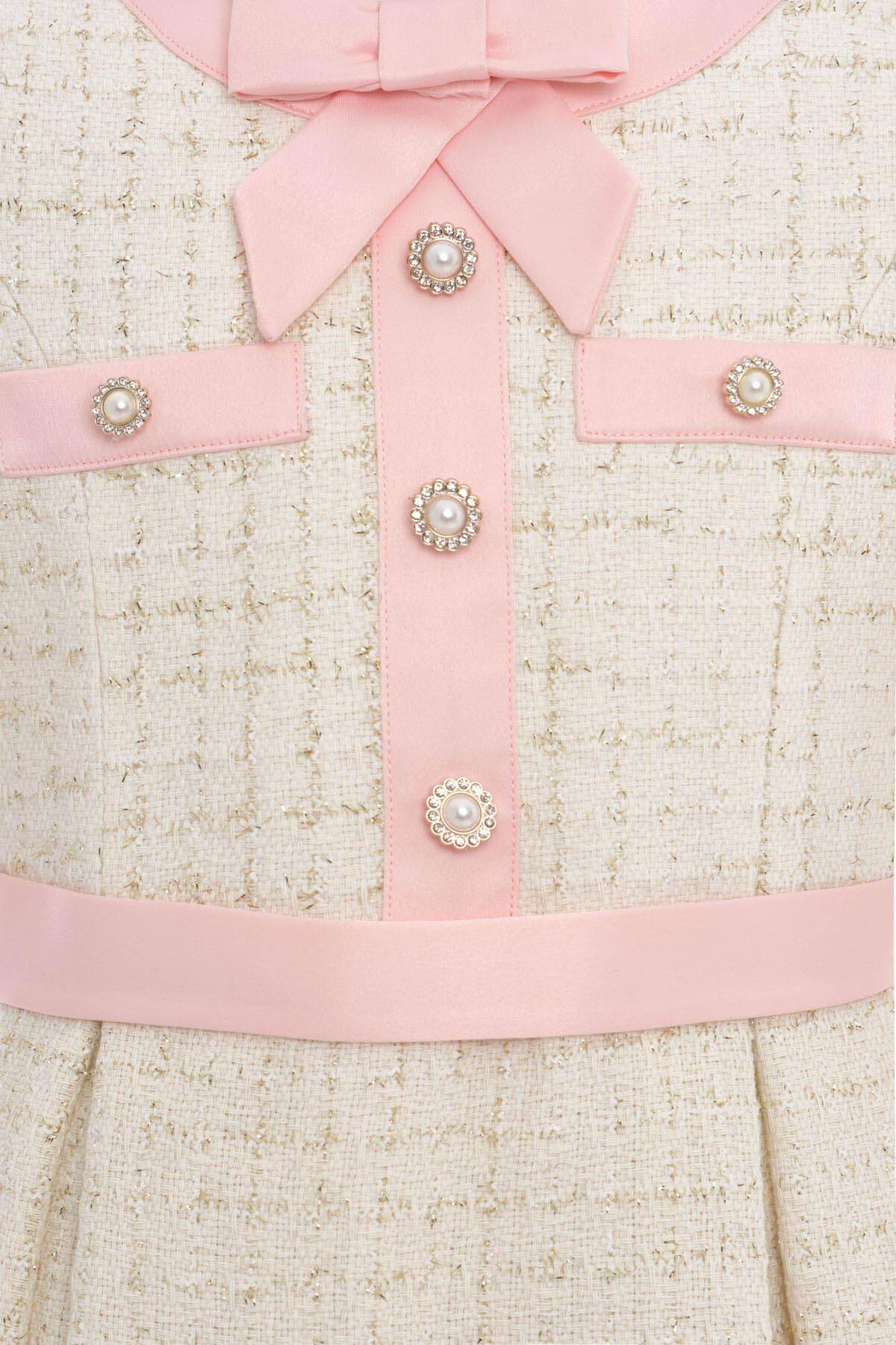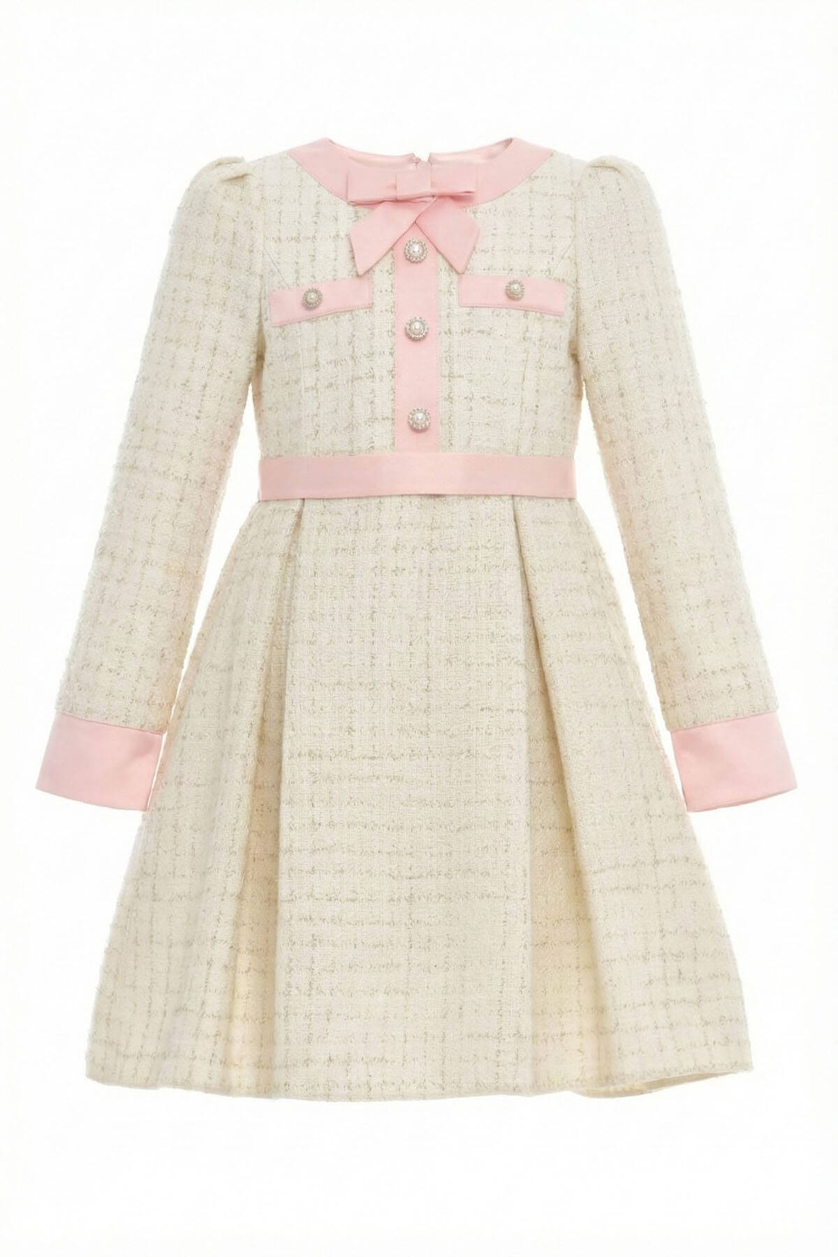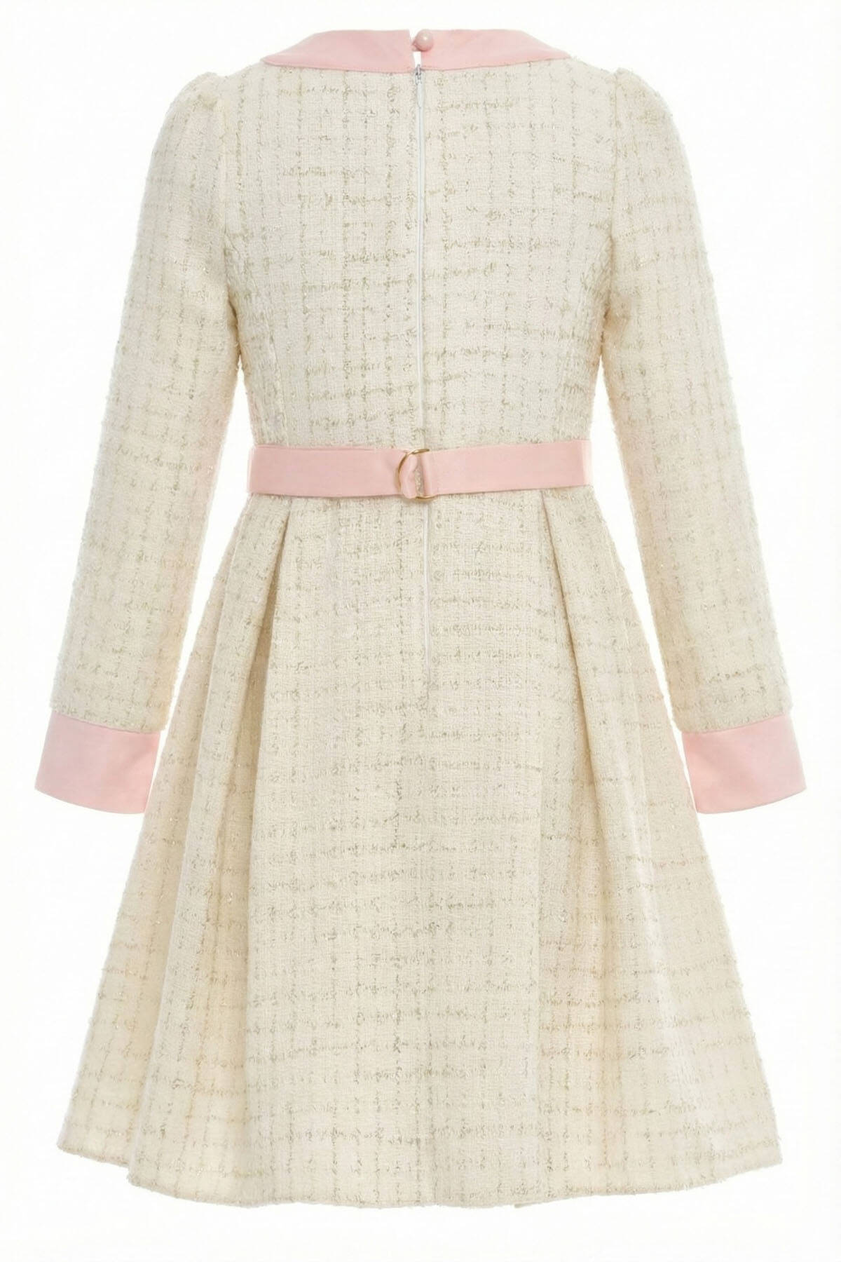Girls Elegant Tweed Dress with Pearly Buttons (8–15 Age):