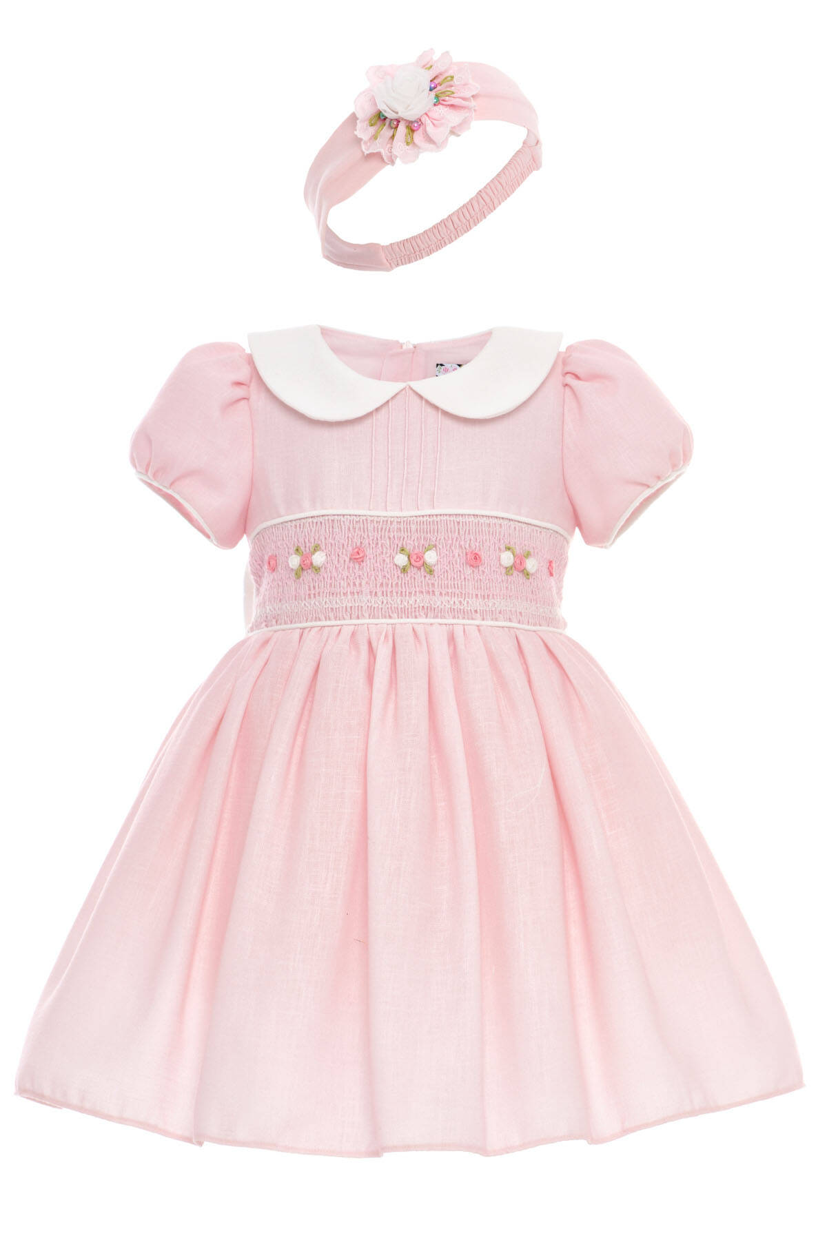 Baby Girls Smocked Dress & Headband (6–24 Months):