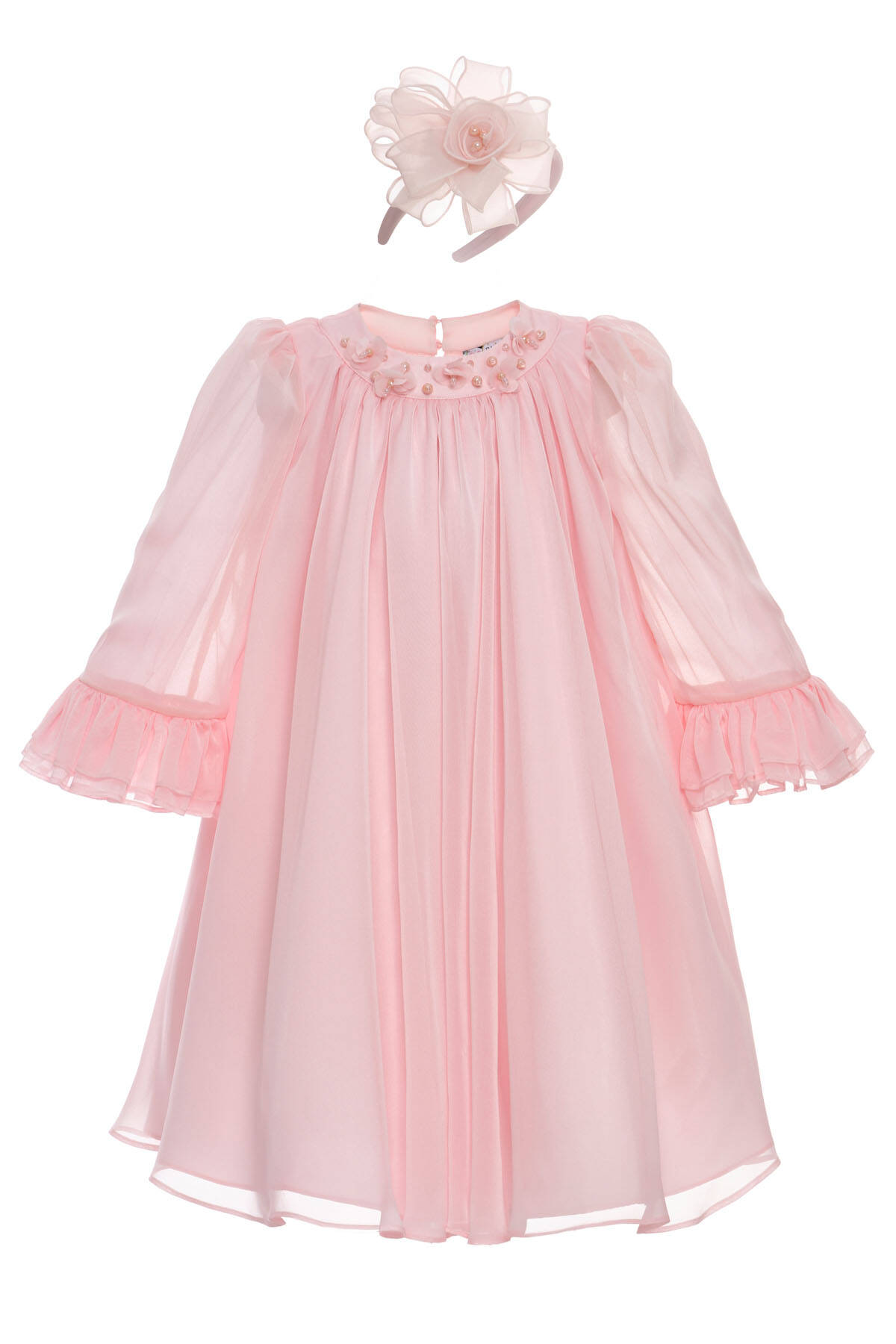 Powder Chiffon Swing Dress with Pearl Flower Headband 3-7 AGE 36411PR