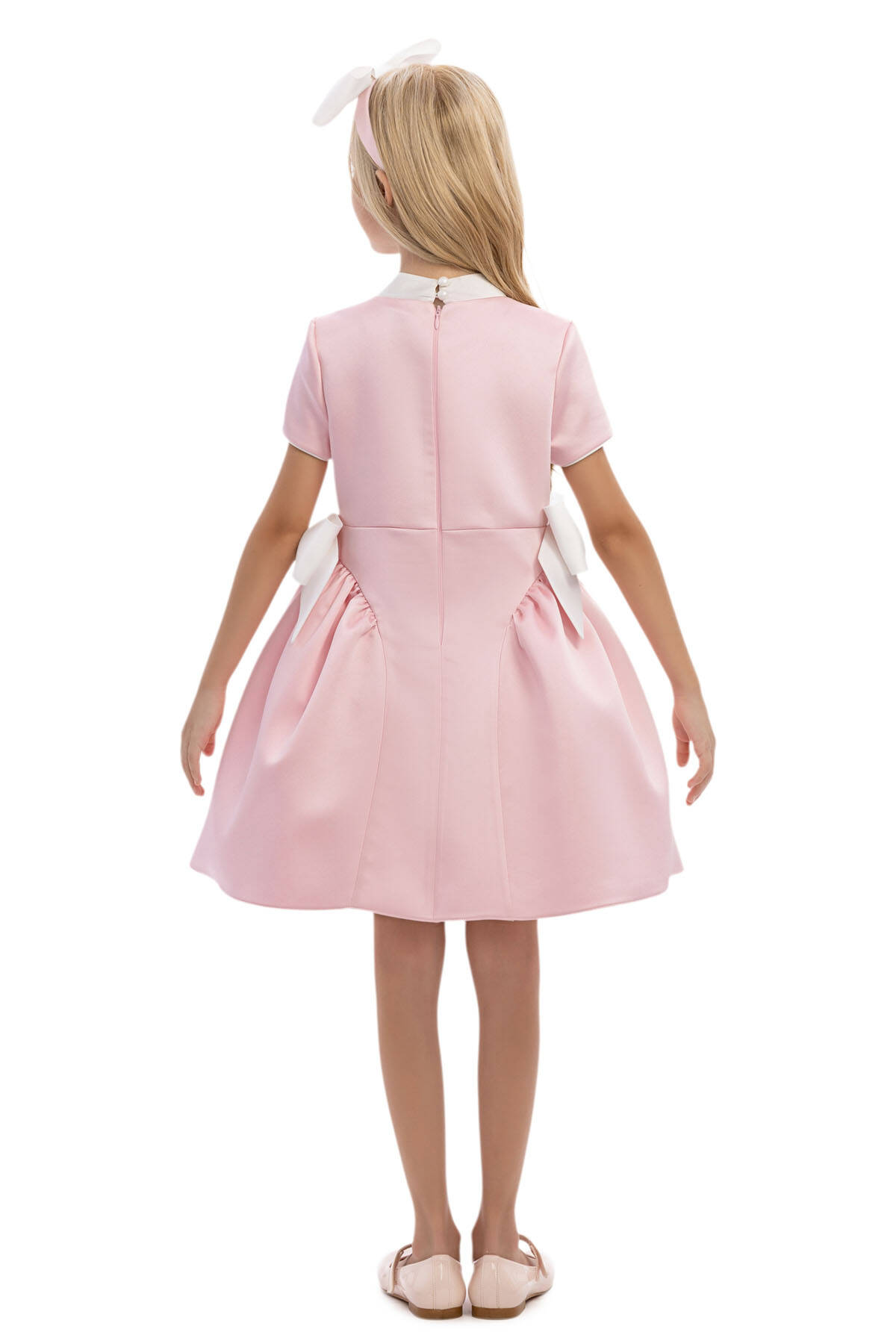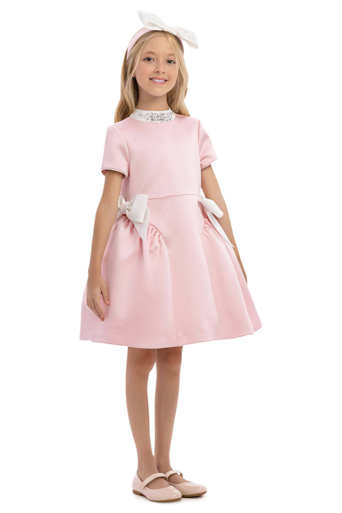 Girls Dress with Crystal Collar and Satin Bows (3–7 Age):
