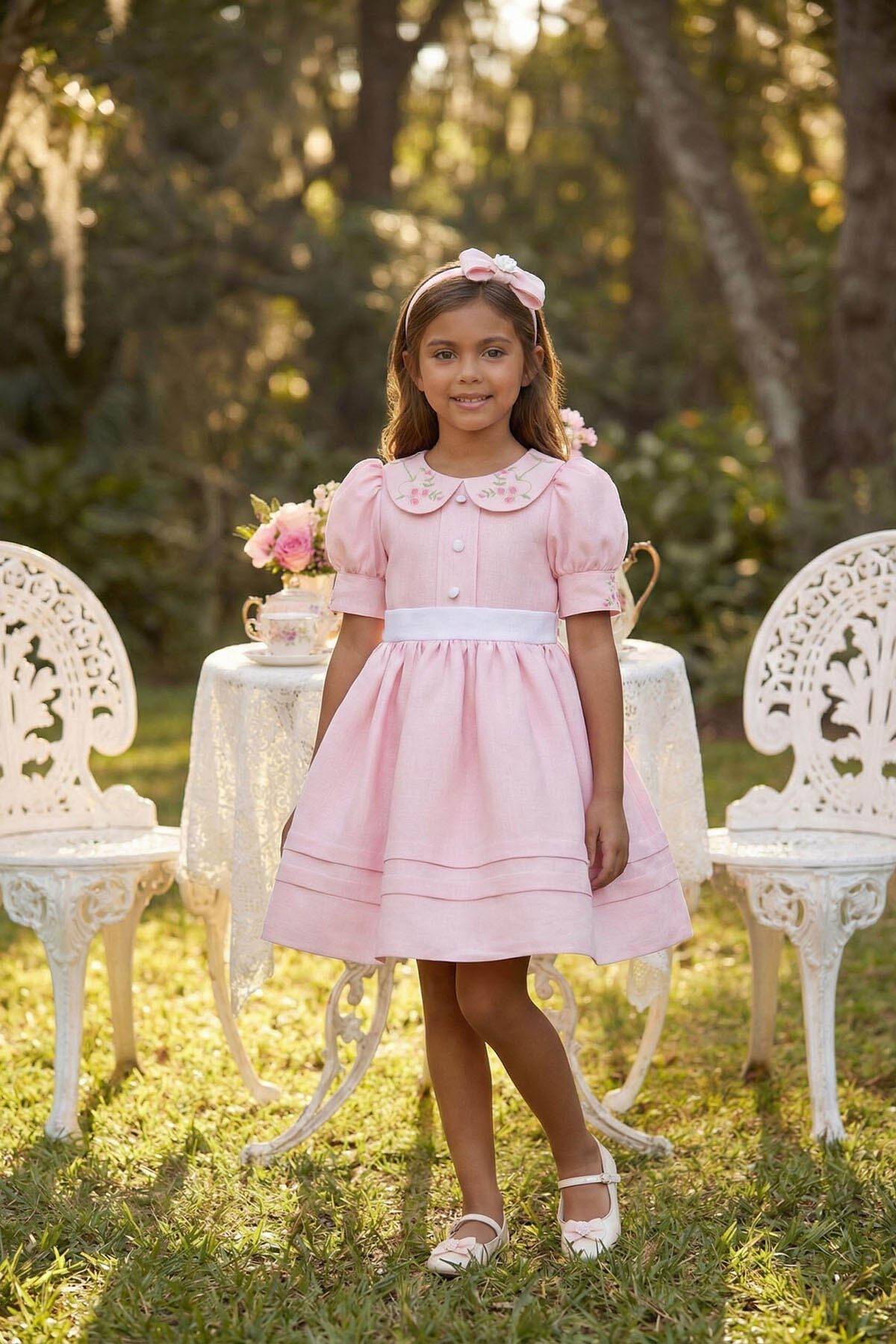 Powder Girls Elegant Embroidered Collar Dress with Headband 3-7 AGE 36394PR