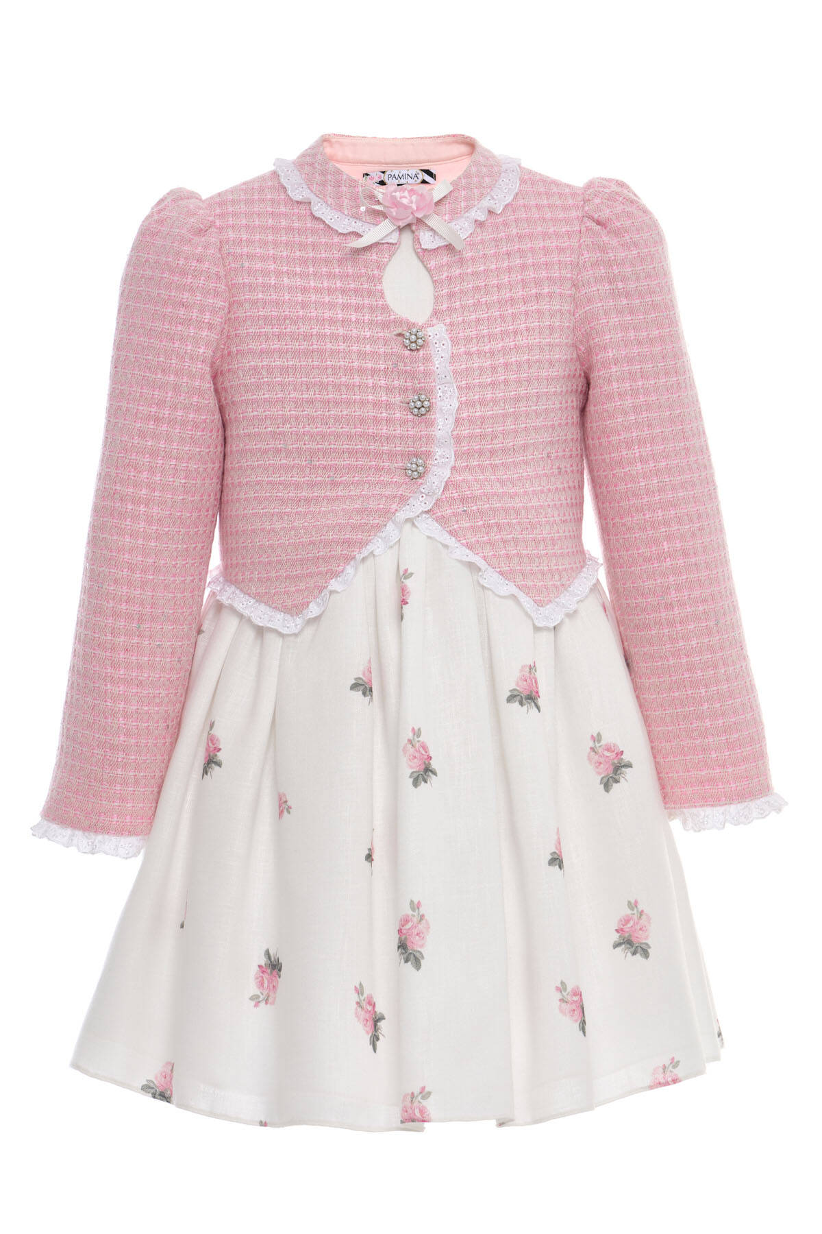 Girls Floral Dress & Tweed Jacket Set (3–7 Age):