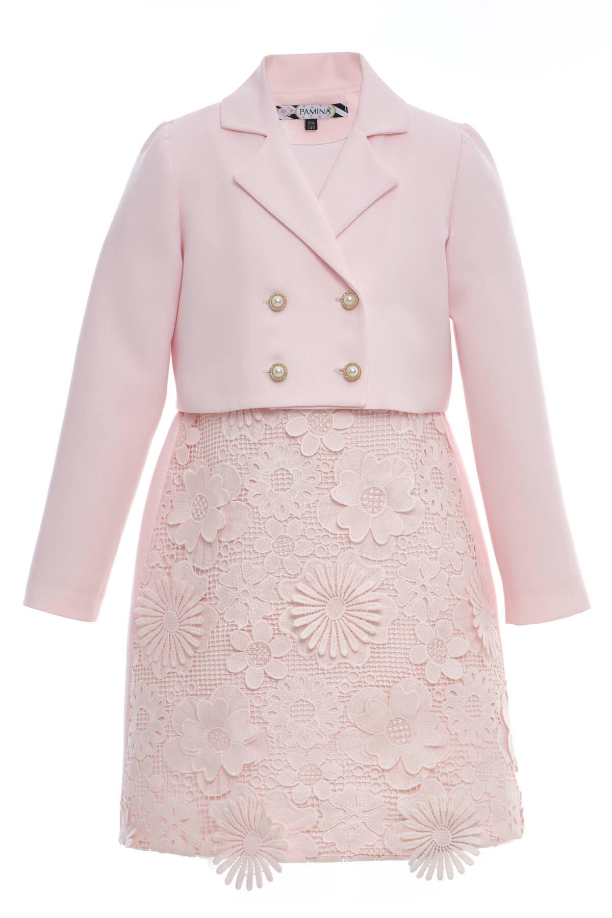 Girls Floral Lace Dress & Jacket Set (8–15 Age):