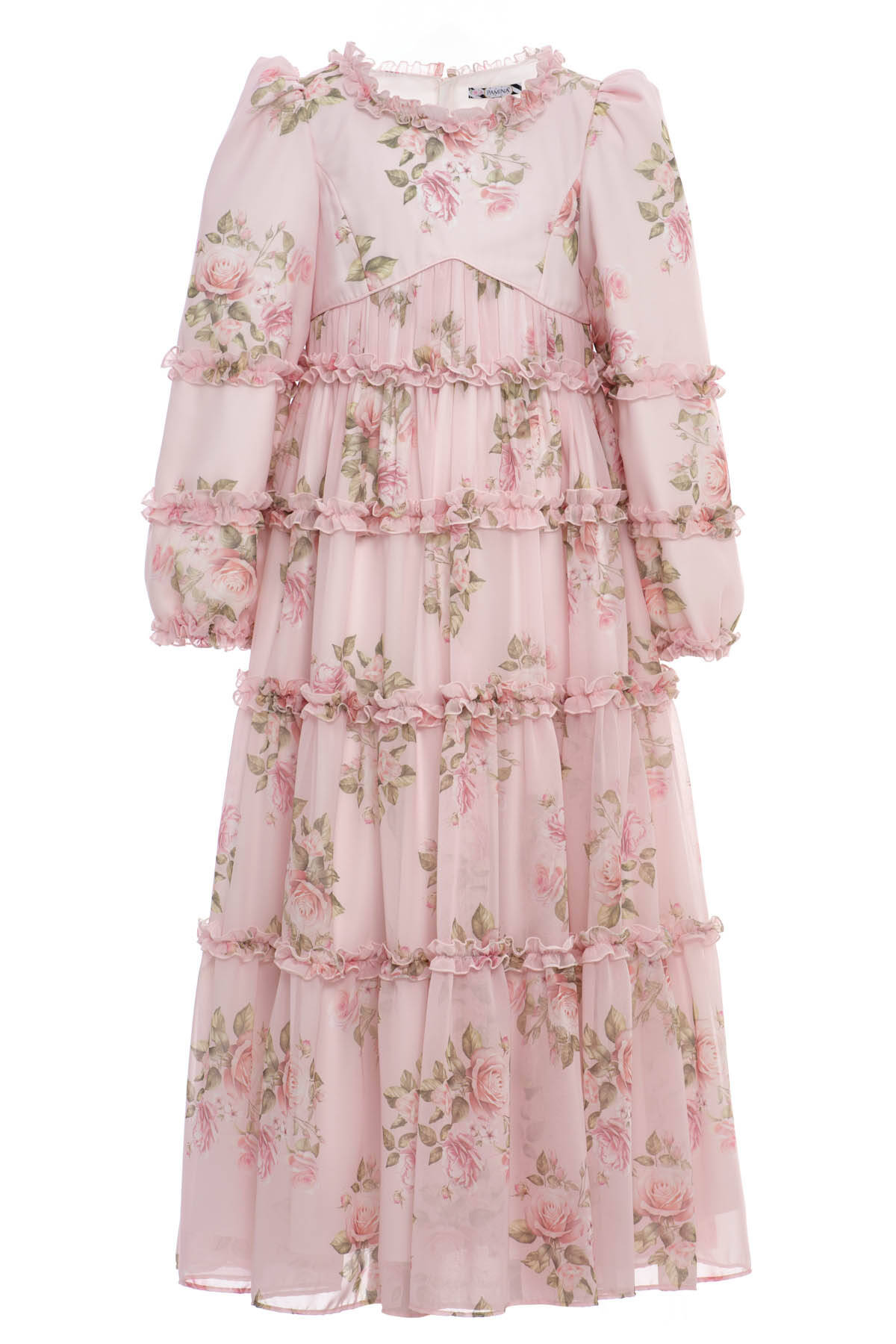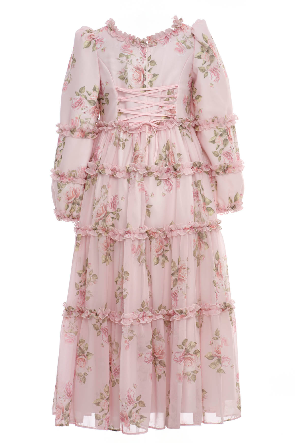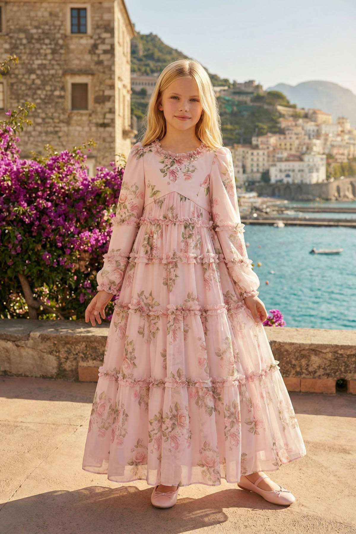 Girls Romantic Tiered Floral Maxi Dress with Ruffles (8–15 Age):