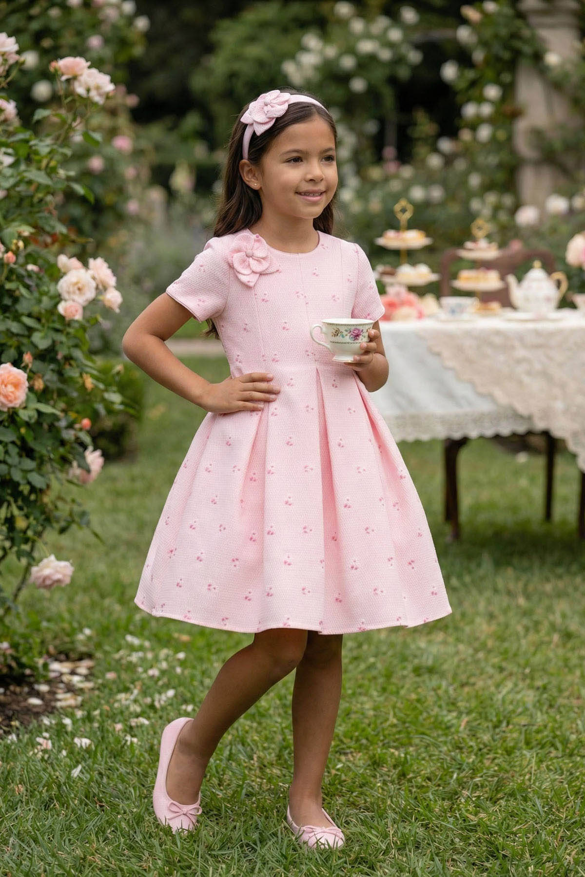 Powder Girls Textured Flower Dress & Headband 3-7 AGE 36176PR