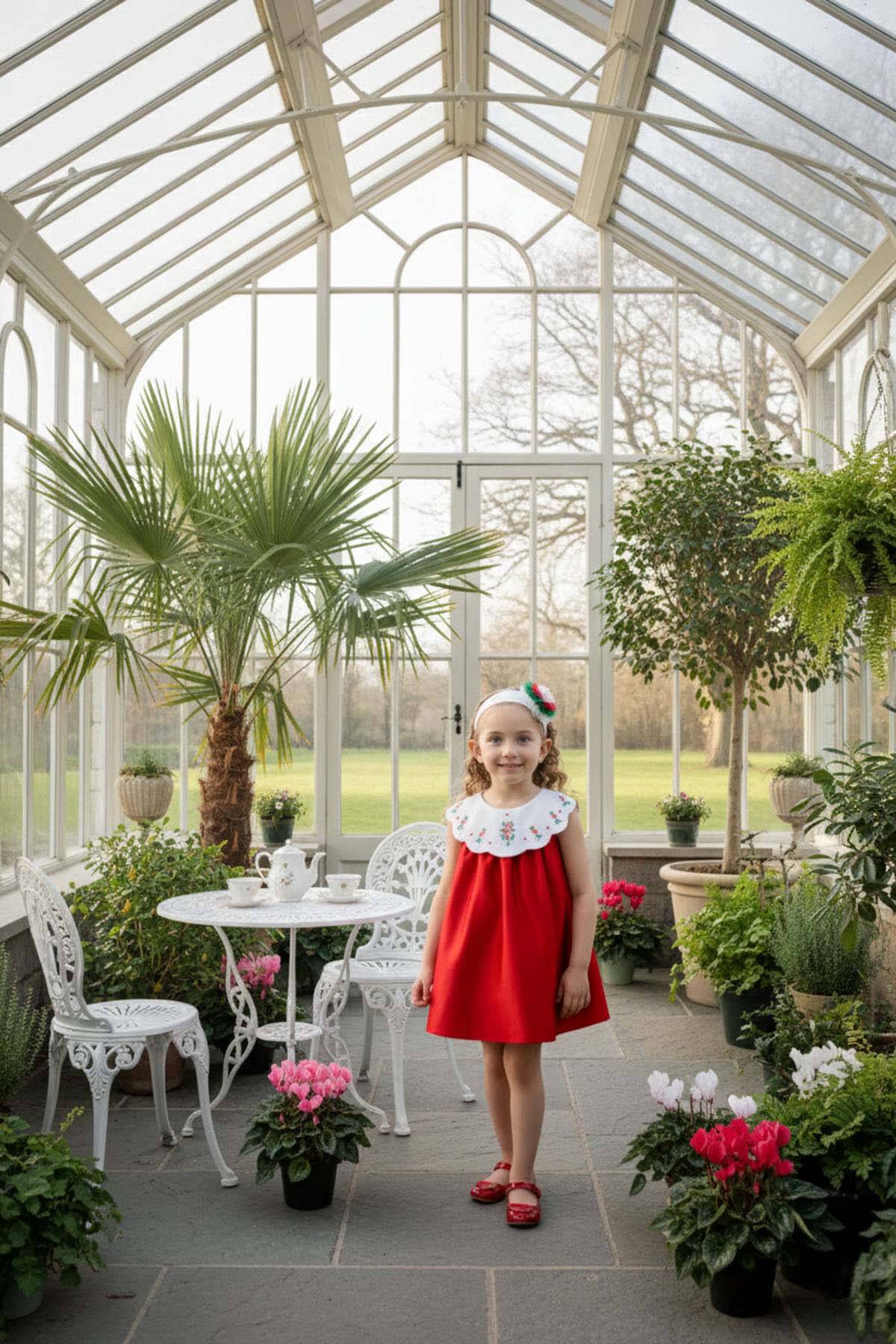 Red Baby Dress with Embroidered Collar & Headband 6-24 MONTH 36097PR
