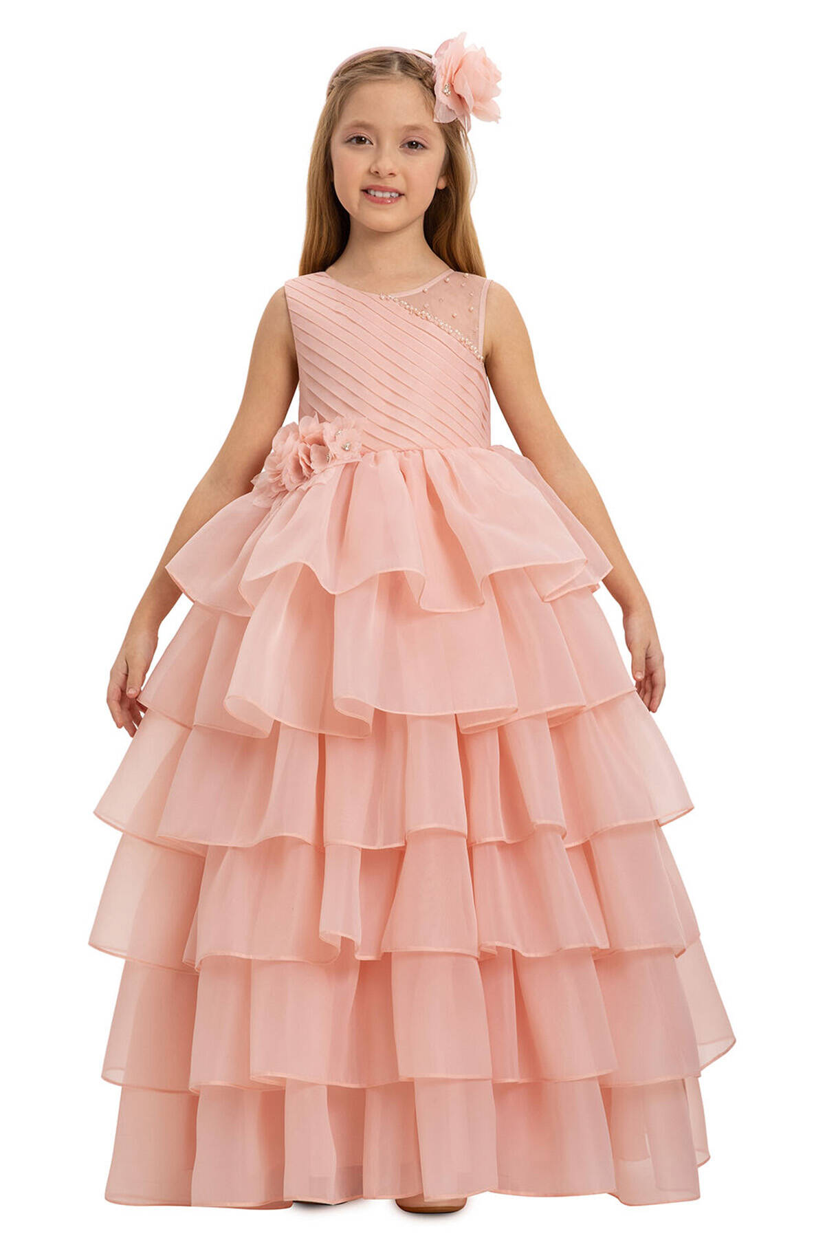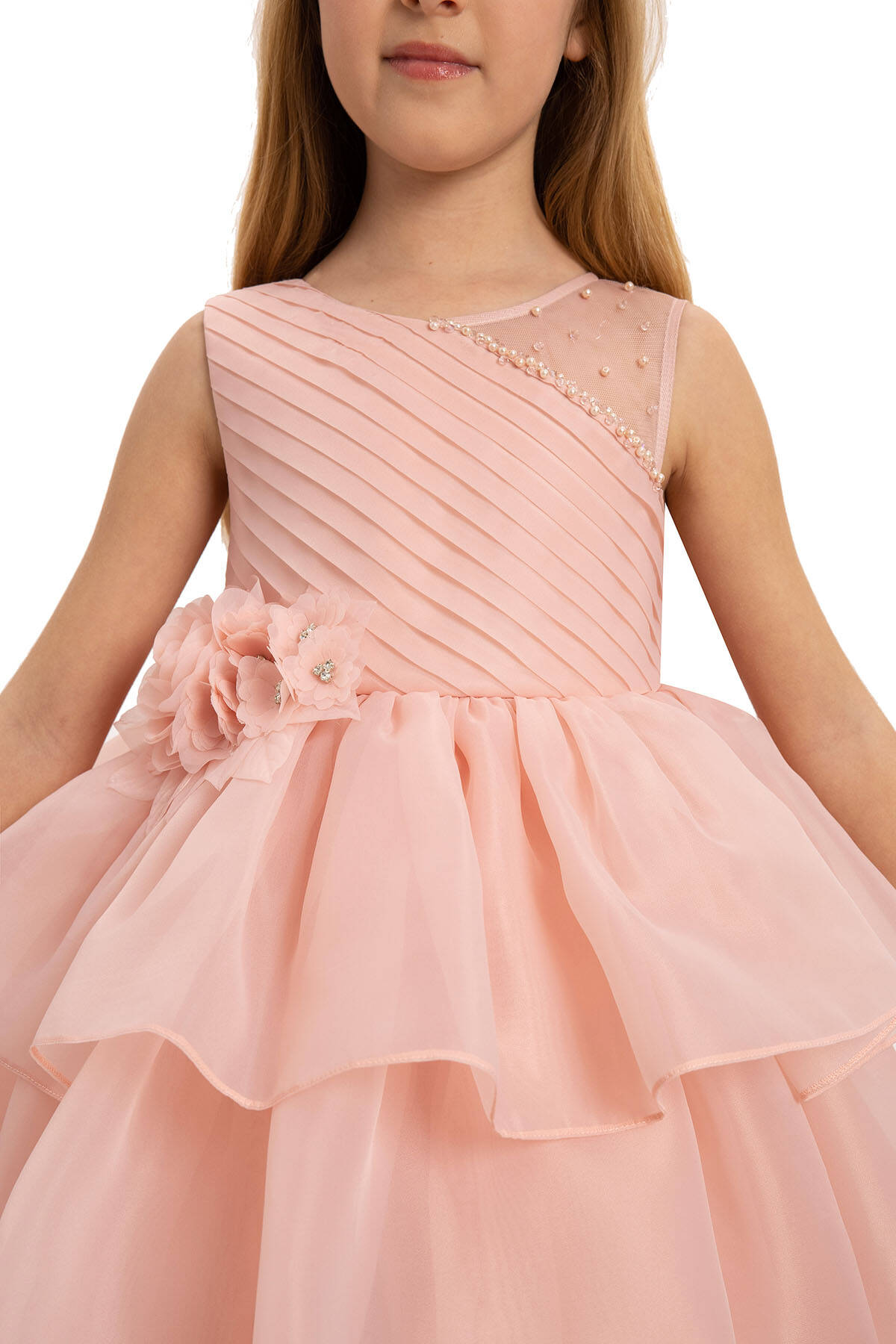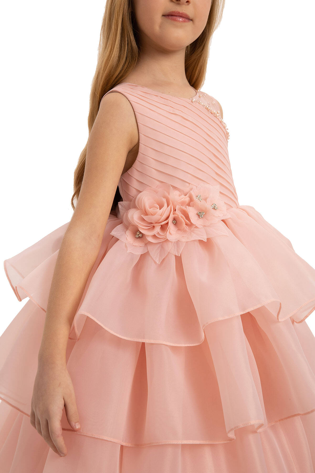Salmon Bow Dress with Bolero and Hair Accessory (3-7 Age) 3-7 AGE 35219PR