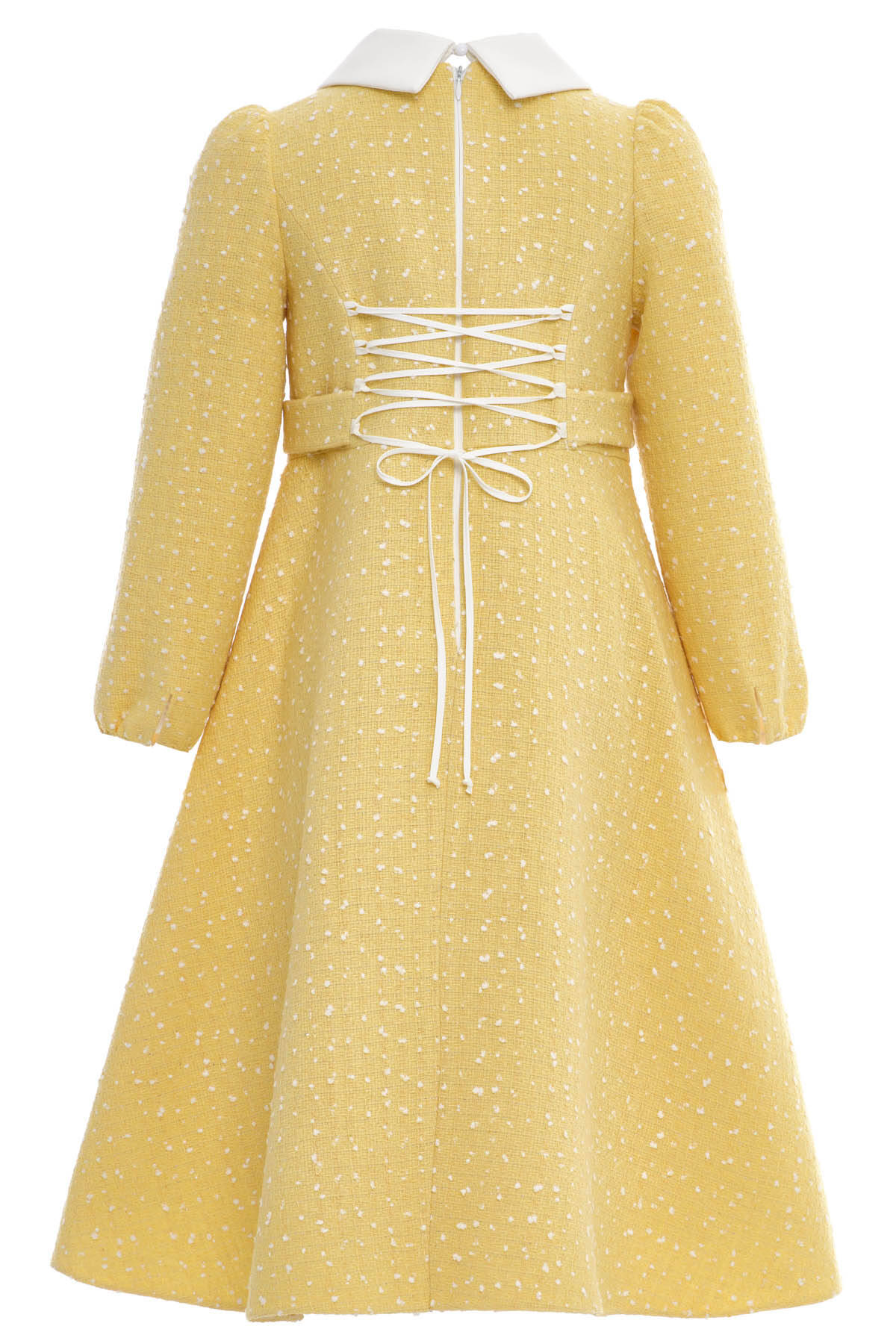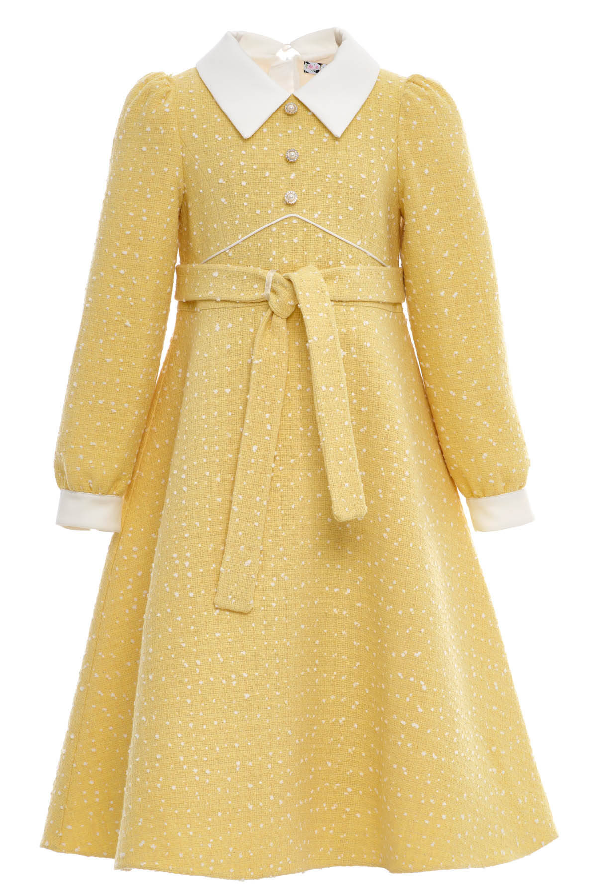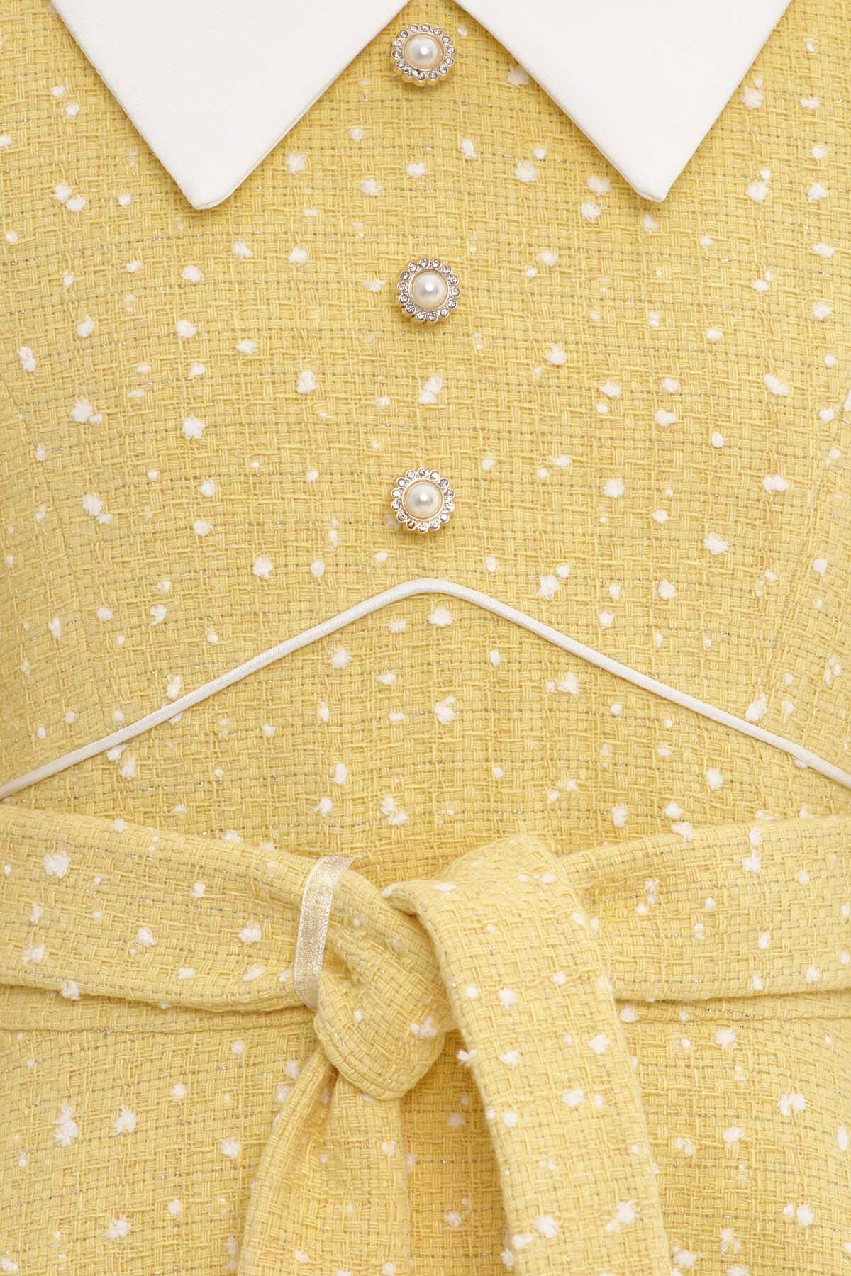 Yellow Elegant Tweed Girls Dress with Pearl Buttons 8-15 AGE 36446PR